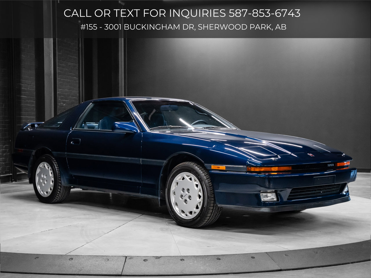 All Original | 5-Speed Manual | Adaptive Suspension | Cruise Control | Power Seats | Power Windows | Clean Carfax | Non SmokerVehicle HighlightsThis 1988 Toyota Supra Turbo is a classic sports car icon, offering timeless styling, thrilling performance, and exceptional originality. Powered by the legendary 3.0L inline-6 engine paired with a 5-speed manual transmission, it delivers a true driver-focused experience.All components are all original, preserving the authenticity and charm of this vintage Supra. Meticulously maintained and in great condition, this Supra Turbo is perfect for collectors, enthusiasts, or anyone seeking a rare and iconic sports car.Mechanical3.0L Turbocharged I-6All Original5-Speed ManualAccident FreeNon SmokerExteriorBlue PaintAdaptive SuspensionInteriorBlue InteriorCruise ControlPower seatsPower windowsThis vehicle is presented by Sherwood Motorcars located at 155-3001 Buckingham Drive, Sherwood Park, AB T8H 0X5. National and International Shipping Available - Ask us about ourimport and export options. For more details, please visit us in store, or call/text 587-853-6743. AMVIC Licensed Dealer.This vehicle is presented by Sherwood Motorcars located at 155-3001 Buckingham Drive, Sherwood Park, AB T8H 0X5. National and International Shipping Available - Ask us about our import and export options. For more details, please visit us in store, or call/text 587-782-4153. AMVIC Licensed Dealer.Pricing includes AMVIC & documentation fee. See Dealer for Details [Read more] [Read less]