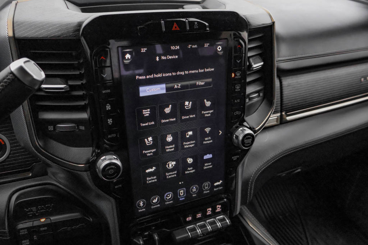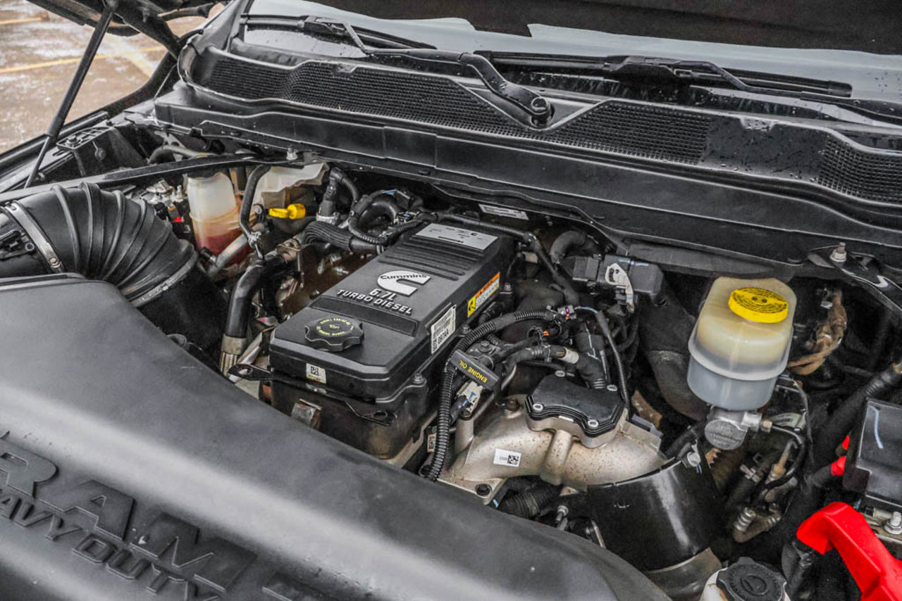 ENGINE: 6.7L CUMMINS I-6 TURBO DIESEL -inc: Selective Catalytic Reduction (Urea) Dual 730-Amp Maintenance-Free Batteries Cummins Turbo Diesel Badge Heavy-Duty Engine Cooling Supplemental Heater RAM Active Air Intake 220-Amp Alternator Winter Front Grille Cover GVWR: 5 352 kg (11 800 lbs) Current Generation Engine Controller Diesel Exhaust Brake Capless Fuel-Filler