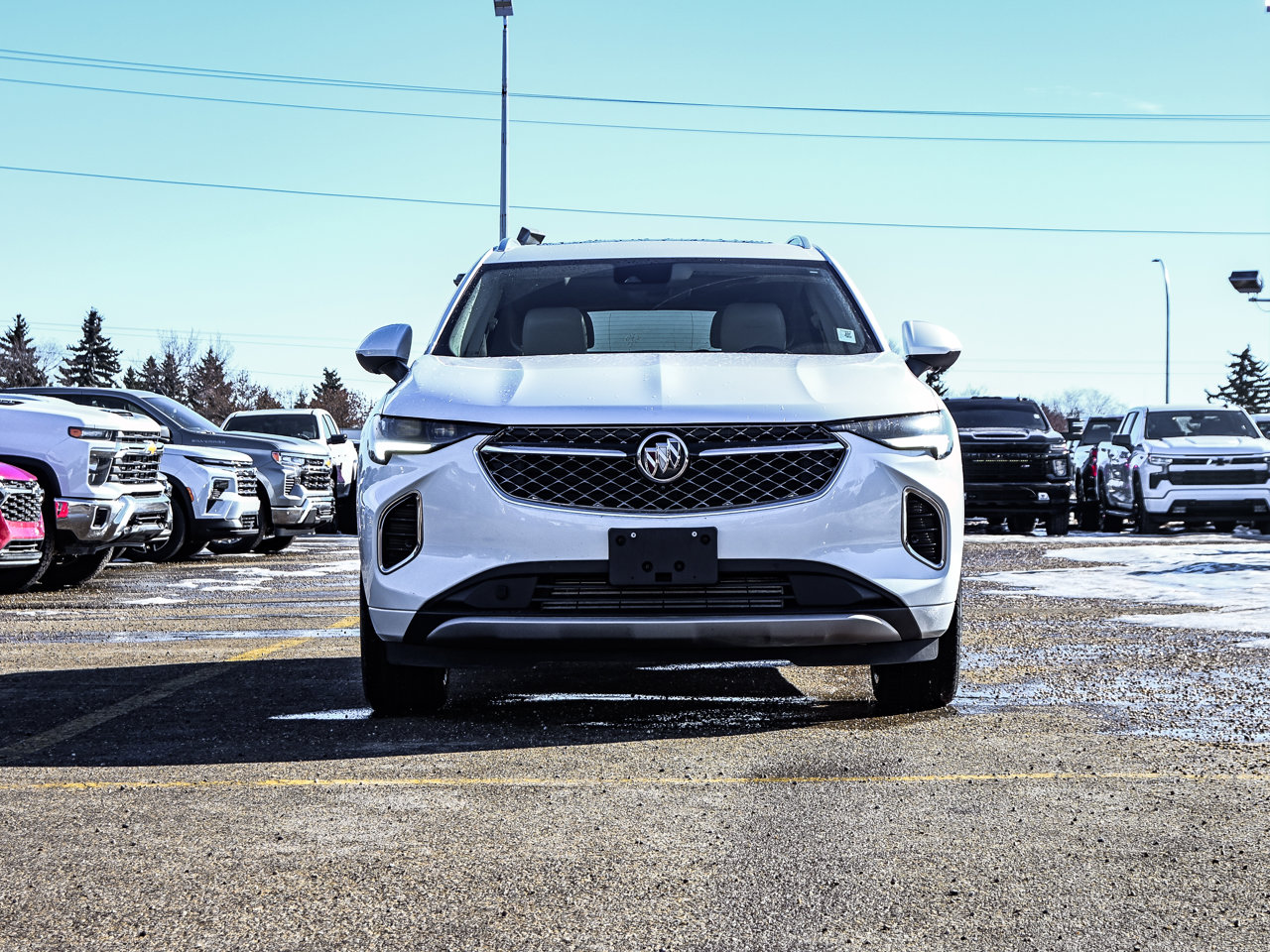 Technology Package | HD Surround Vision | Heads-| Up Display | Bose Speakers | Adaptive Cruise Control | Heated & Ventilated Leather Seats | One Owner | Accident FreeThe 2022 Buick Envision Avenir AWD 2.0T is a luxury compact SUV that blends sophisticated design, advanced technology, and refined comfort. Powered by a 2.0L turbocharged engine with all-wheel drive, it delivers smooth, responsive performance while maintaining confident handling in all weather conditions.Inside, the Avenir trim offers a premium experience with heated and ventilated leather seats, creating comfort in any season, complemented by a modern Heads-Up Display that keeps important information within your line of sight. The cabin is further enhanced by the Bose premium audio system, delivering rich, immersive sound for every drive.Advanced technology features make driving safer and more convenient. The Technology Package includes HD Surround Vision, adaptive cruise control, and other driver-assistance systems, providing confidence on the road.This Envision has had one careful owner and is accident-free, reflecting its excellent condition and well-maintained history. With its combination of luxury features, cutting-edge technology, and all-weather capability, the 2022 Buick Envision Avenir AWD 2.0T is perfect for drivers who want style, comfort, and confidence in a compact SUV.