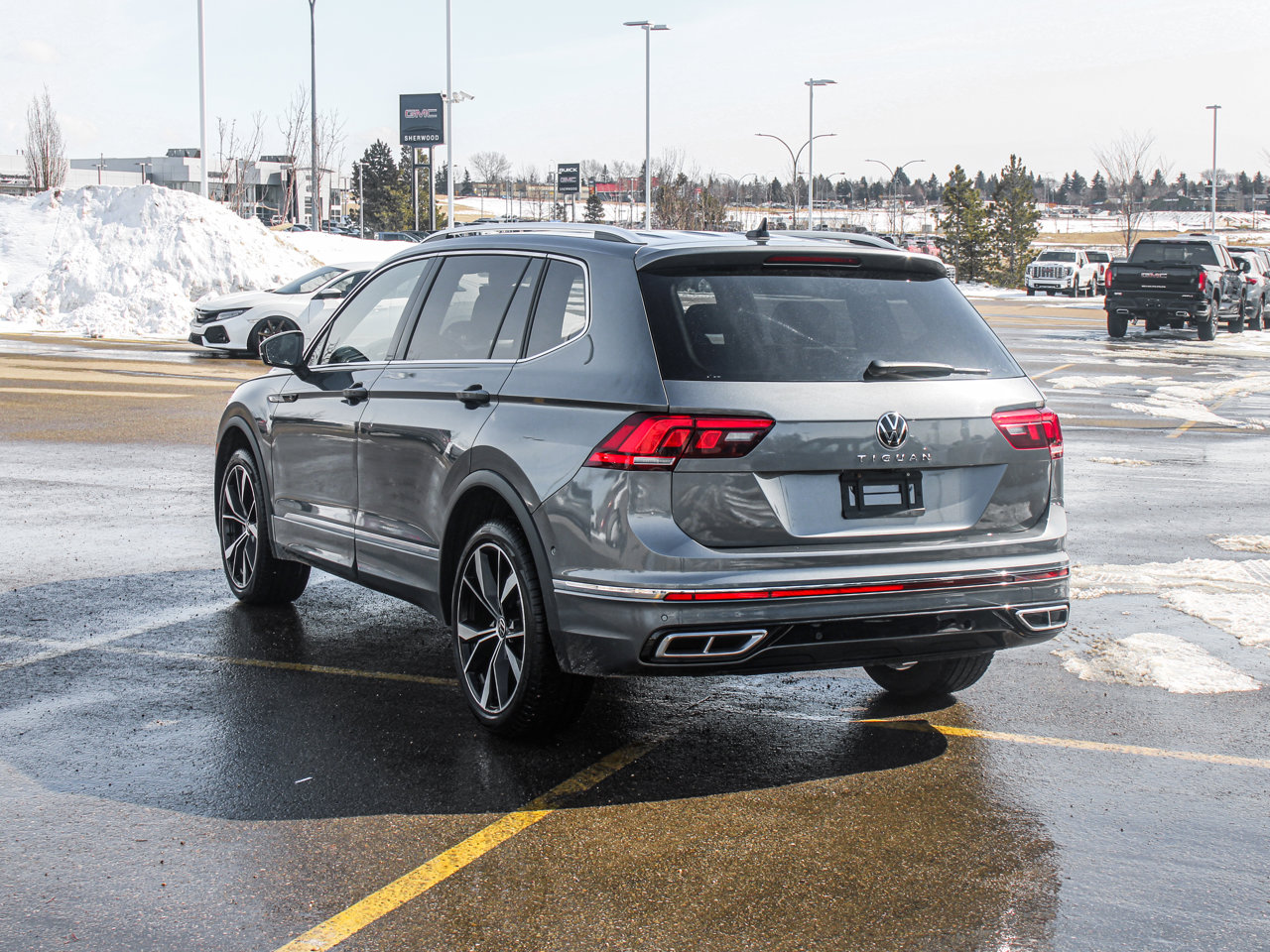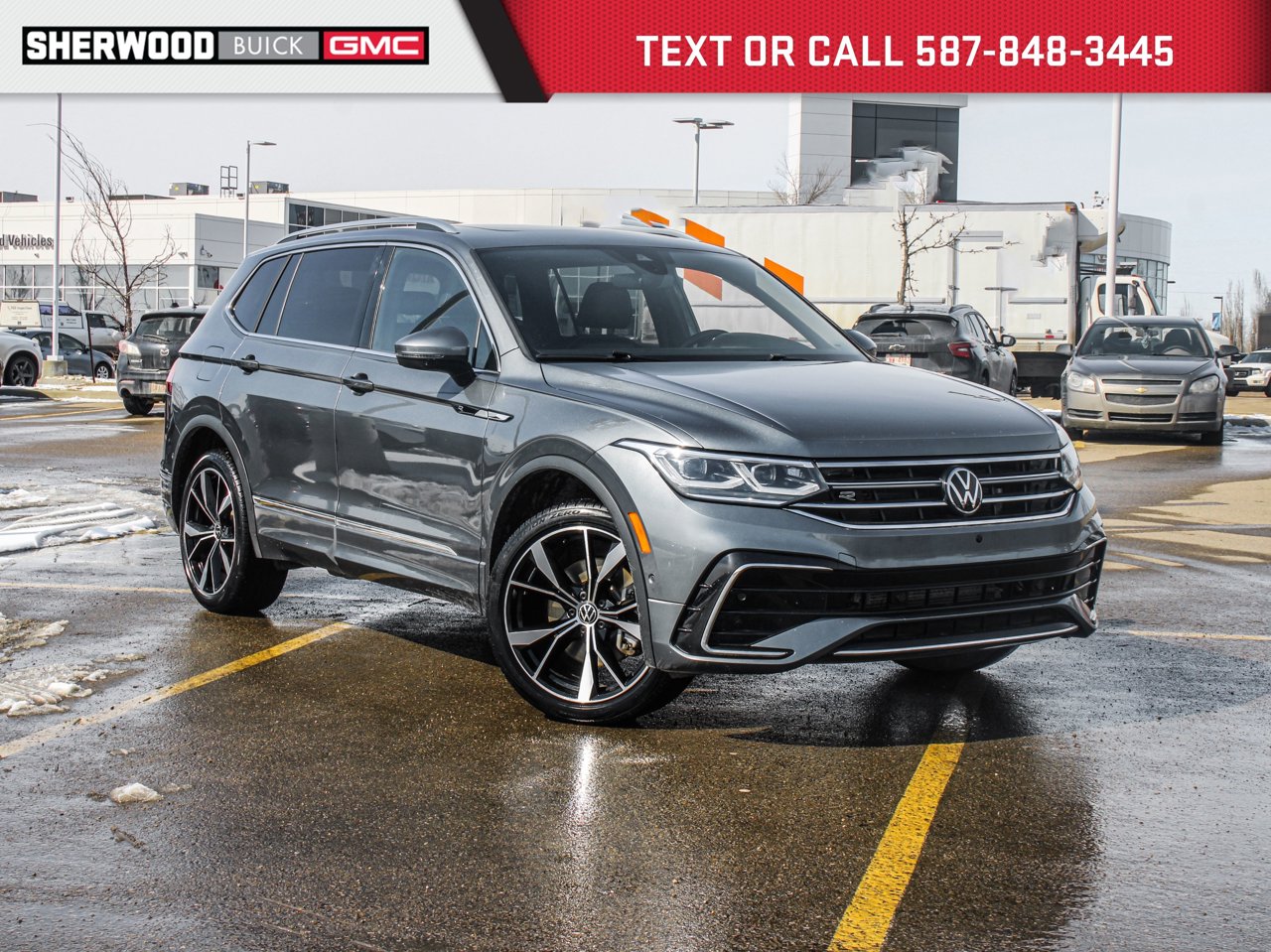 4MOTION | Sunroof | Navigation | Heated Leather Seats/Steering Wheel/Rear Seats | Tri-Zone Climate Controls | Remote Start | Fender Audio | Power Liftgate | 360 Degree Backup Camera | Adaptive Cruise ControlElevate your daily drive with this 2024 Volkswagen Tiguan Highline R-Line 2.0T 4MOTION---a perfect combination of sporty design, premium comfort, and all-weather capability.Powered by a responsive 2.0L turbocharged engine and equipped with 4MOTION all-wheel drive, this Tiguan delivers a confident, composed ride in any condition. The R-Line package enhances its presence with bold styling and athletic accents, giving it a refined yet aggressive look on the road.Step inside and experience a thoughtfully crafted interior loaded with upscale features. Enjoy heated leather seats for front and rear passengers, a heated steering wheel, and tri-zone climate control to keep everyone comfortable. The expansive panoramic sunroof brightens the cabin, while built-in navigation ensures you're always on the right path.Convenience meets technology with remote start, a power liftgate, and a premium Fender audio system that delivers crystal-clear sound. Stay safe and confident with advanced features like adaptive cruise control and a 360-degree backup camera, making both highway driving and tight parking effortless.Stylish, versatile, and packed with high-end features, this Tiguan Highline R-Line is the ideal SUV for drivers who want performance, sophistication, and practicality all in one.Talk to our award winning sales staff today and book an appointment or inquire about our services. Sherwood Buick GMC is incredibly proud to be serving Sherwood Park, Edmonton and surrounding areas. Treat yourself - stop by Sherwood Buick GMC today we're located at 10 Automall Road Sherwood Park, Alberta T8H 2N1.AMVIC Licensed Dealership*Pricing includes AMVIC LEVY & Documentation fee. See dealer for details*This vehicle has been previously owned by a rental vehicle business or used as a rental vehicle.