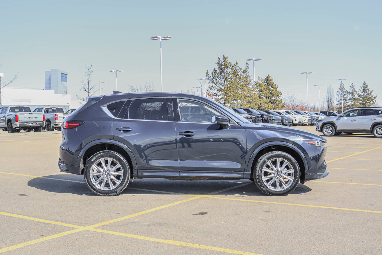 Sunroof | Navigation | Heated Leather Seats/Steering Wheel | Dual Zone Climate Controls | Keyless Entry | Power Liftgate | Adaptive Cruise Control | Backup Camera | 19 WheelsThe 2025 Mazda CX-5 GT 2.5L AWD is a stylish and well-equipped compact SUV that blends performance, comfort, and technology. Its 2.5L engine and all-wheel drive provide confident handling in a variety of road conditions, making it equally capable for daily commutes or weekend adventures.Inside, the CX-5 GT offers a refined cabin with heated leather seats, a heated steering wheel, and dual-zone climate controls to keep every passenger comfortable. Advanced features like navigation, a sunroof, keyless entry, a power liftgate, and a 19 wheel package enhance convenience and elevate the driving experience.Safety and driver-assist technologies, including adaptive cruise control and a backup camera, provide added confidence on the road. With its combination of style, capability, and thoughtful features, the 2025 CX-5 GT is a versatile SUV ready for any journey.Talk to our award winning sales staff today and book an appointment or inquire about our services. Sherwood Buick GMC is incredibly proud to be serving Sherwood Park, Edmonton and surrounding areas. Treat yourself - stop by Sherwood Buick GMC today we're located at 10 Automall Road Sherwood Park, Alberta T8H 2N1.AMVIC Licensed Dealership*Pricing includes AMVIC LEVY & Documentation fee. See dealer for details*This vehicle has been previously owned by a rental vehicle business or used as a rental vehicle.
