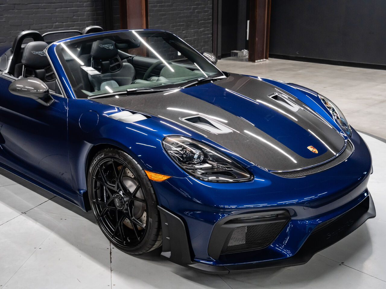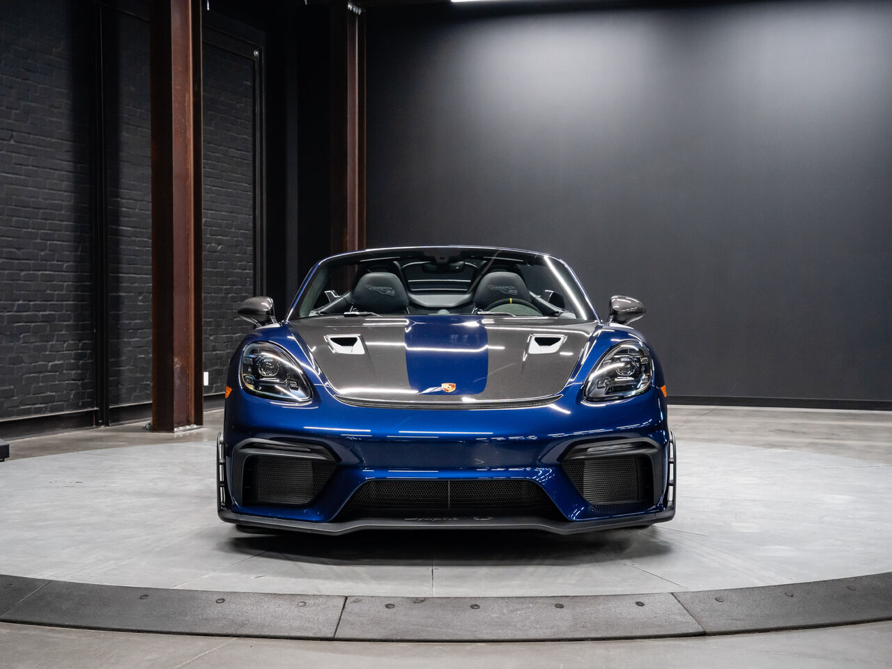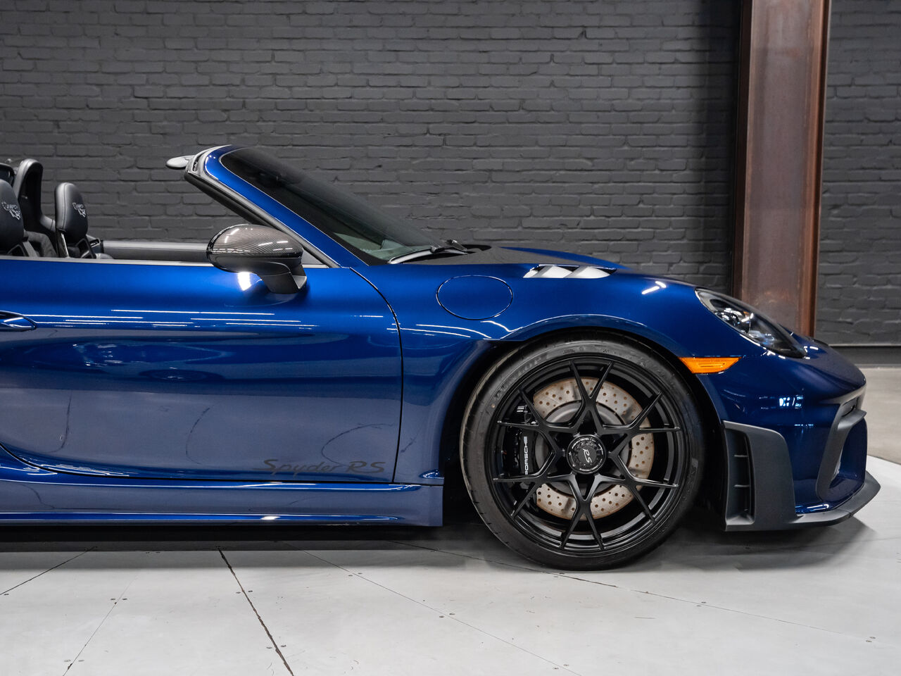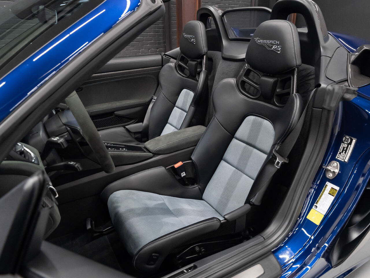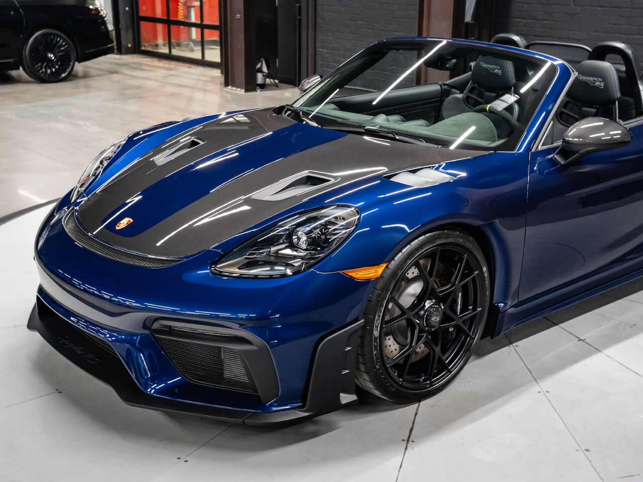 The 2025 Porsche 718 Spyder RS in striking Gentian Blue Metallic with a refined Black and Arctic Grey interior is a true masterpiece of performance and design. This one-owner, non-smoker vehicle comes in like-new condition with a clean Carfax, reflecting meticulous care and attention.