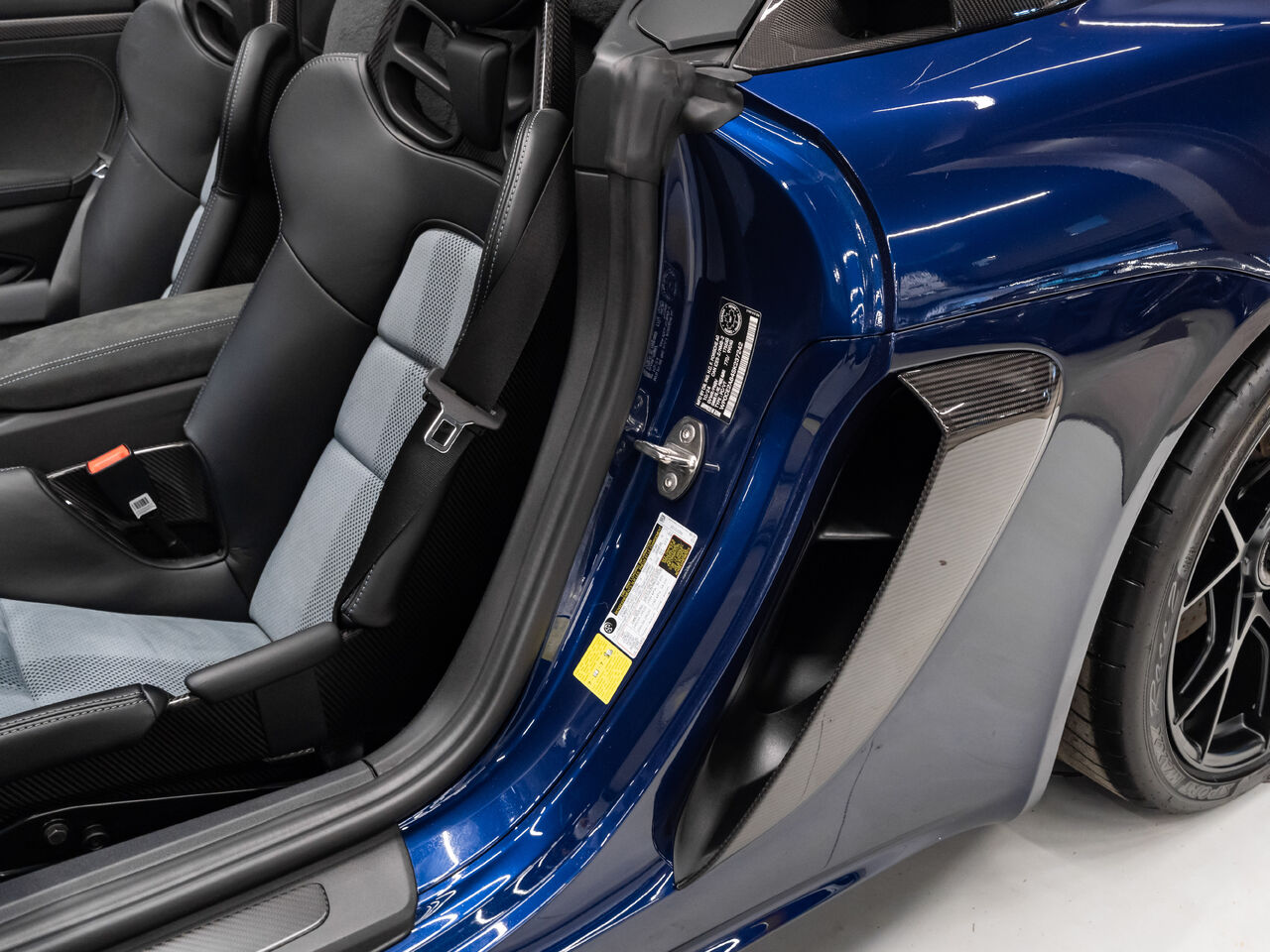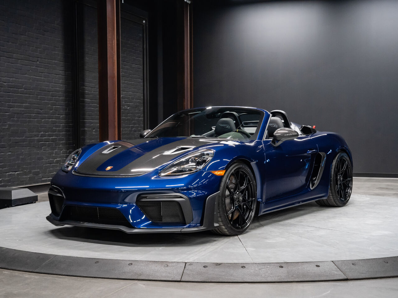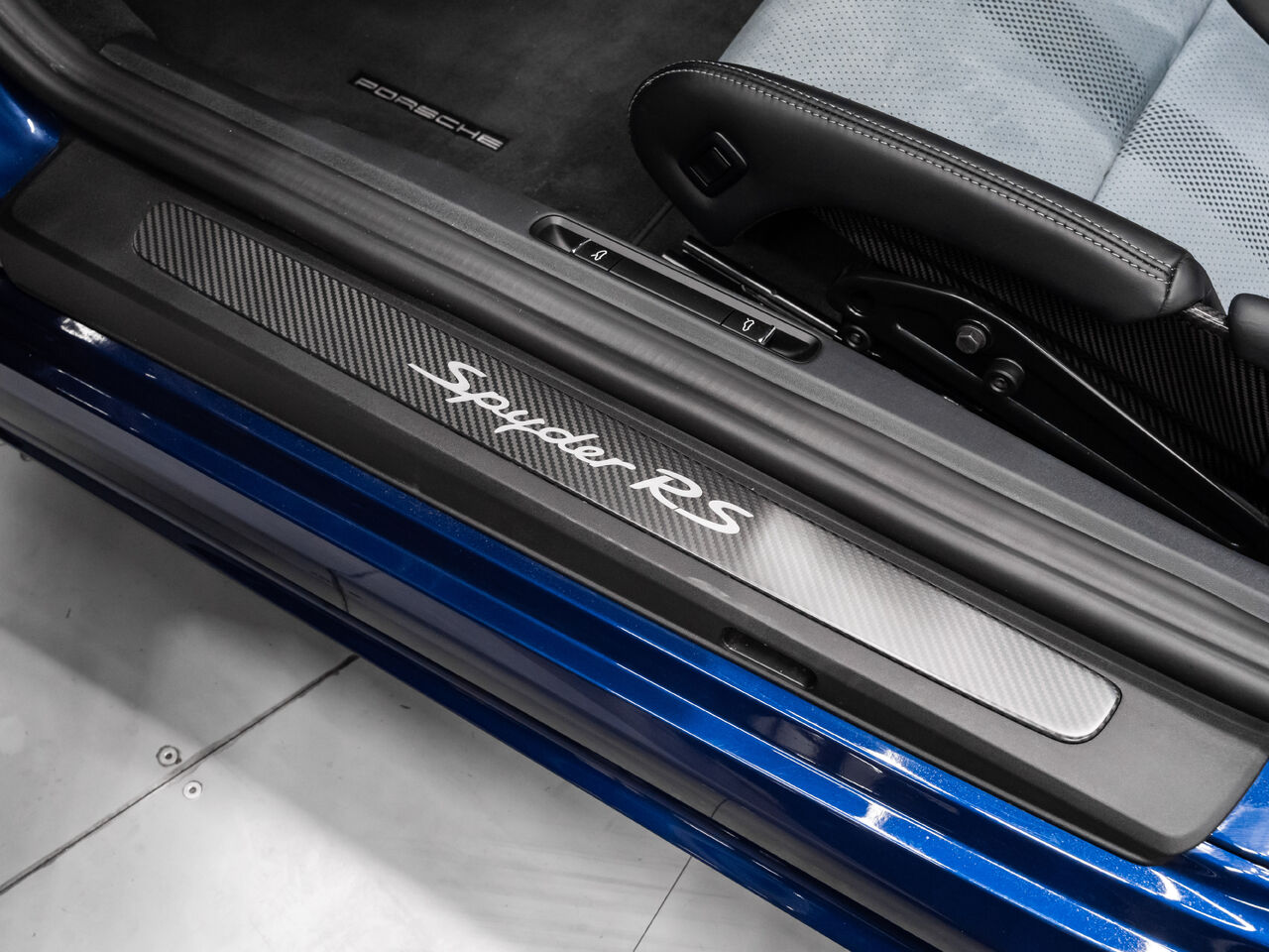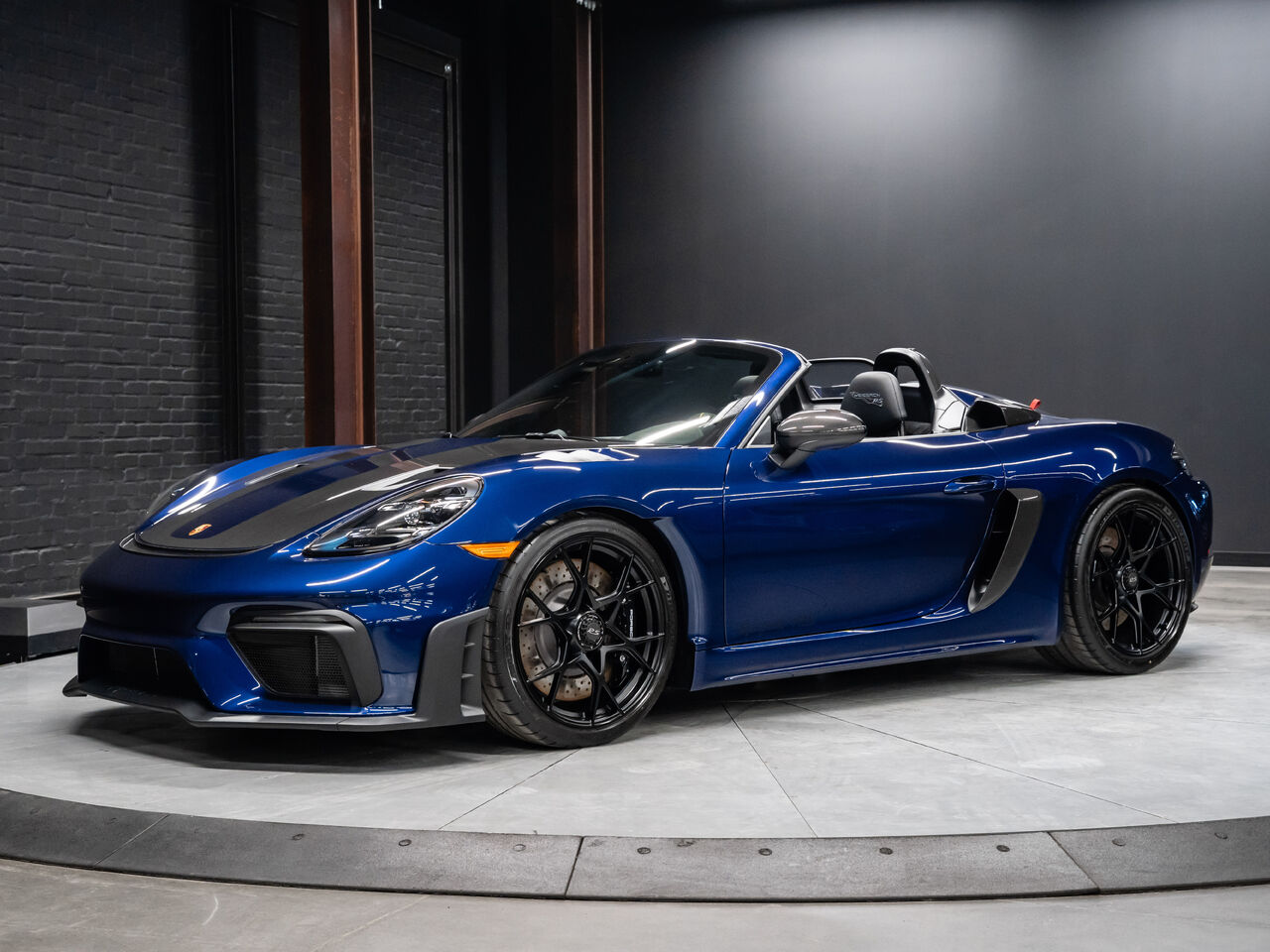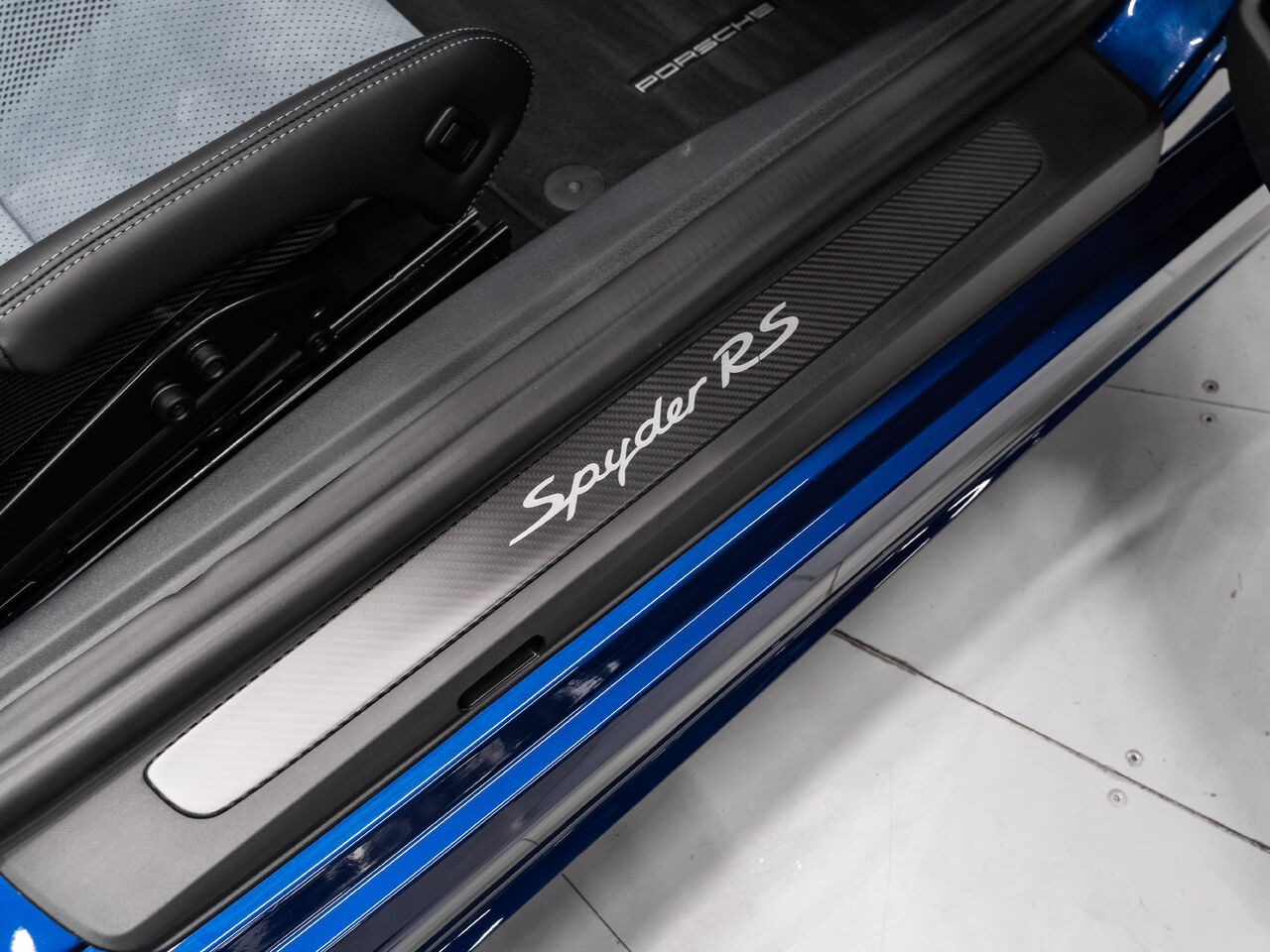 The 2025 Porsche 718 Spyder RS in striking Gentian Blue Metallic with a refined Black and Arctic Grey interior is a true masterpiece of performance and design. This one-owner, non-smoker vehicle comes in like-new condition with a clean Carfax, reflecting meticulous care and attention.