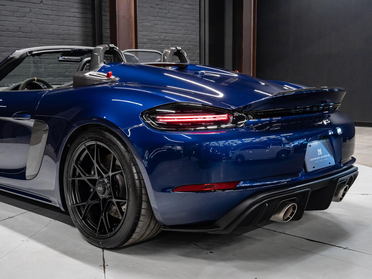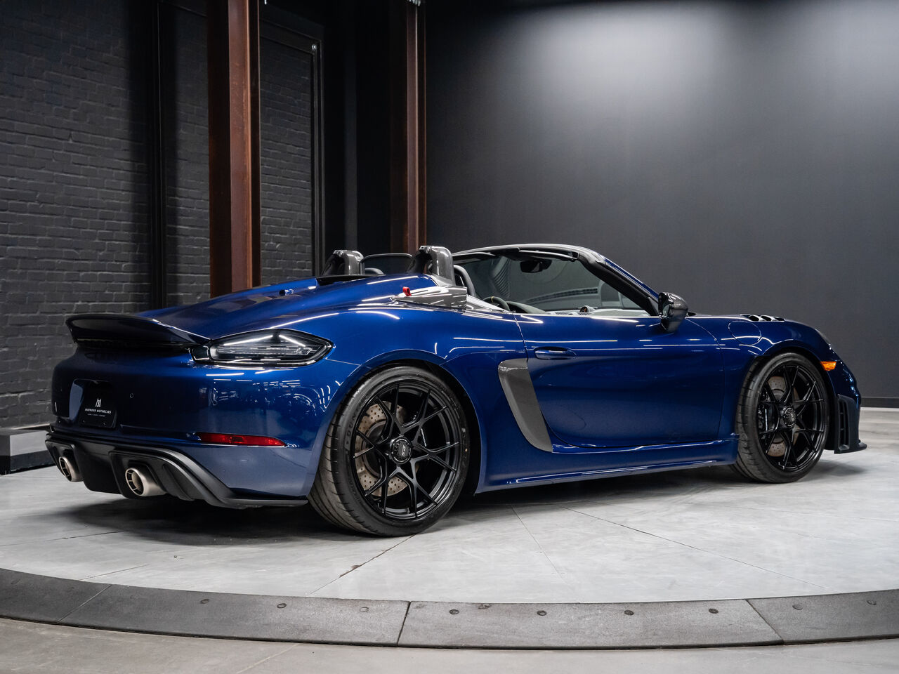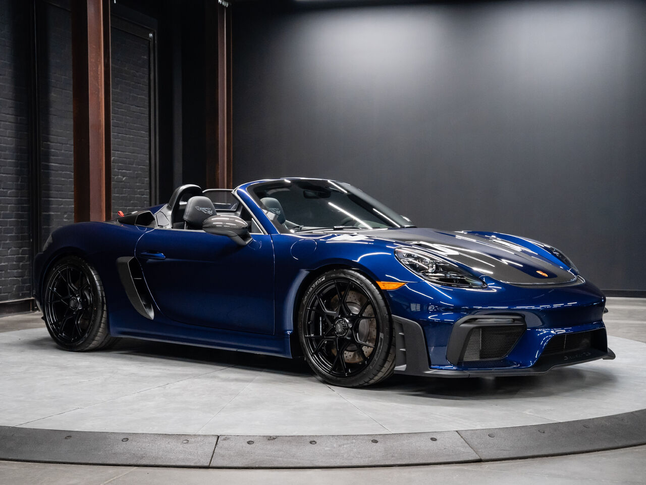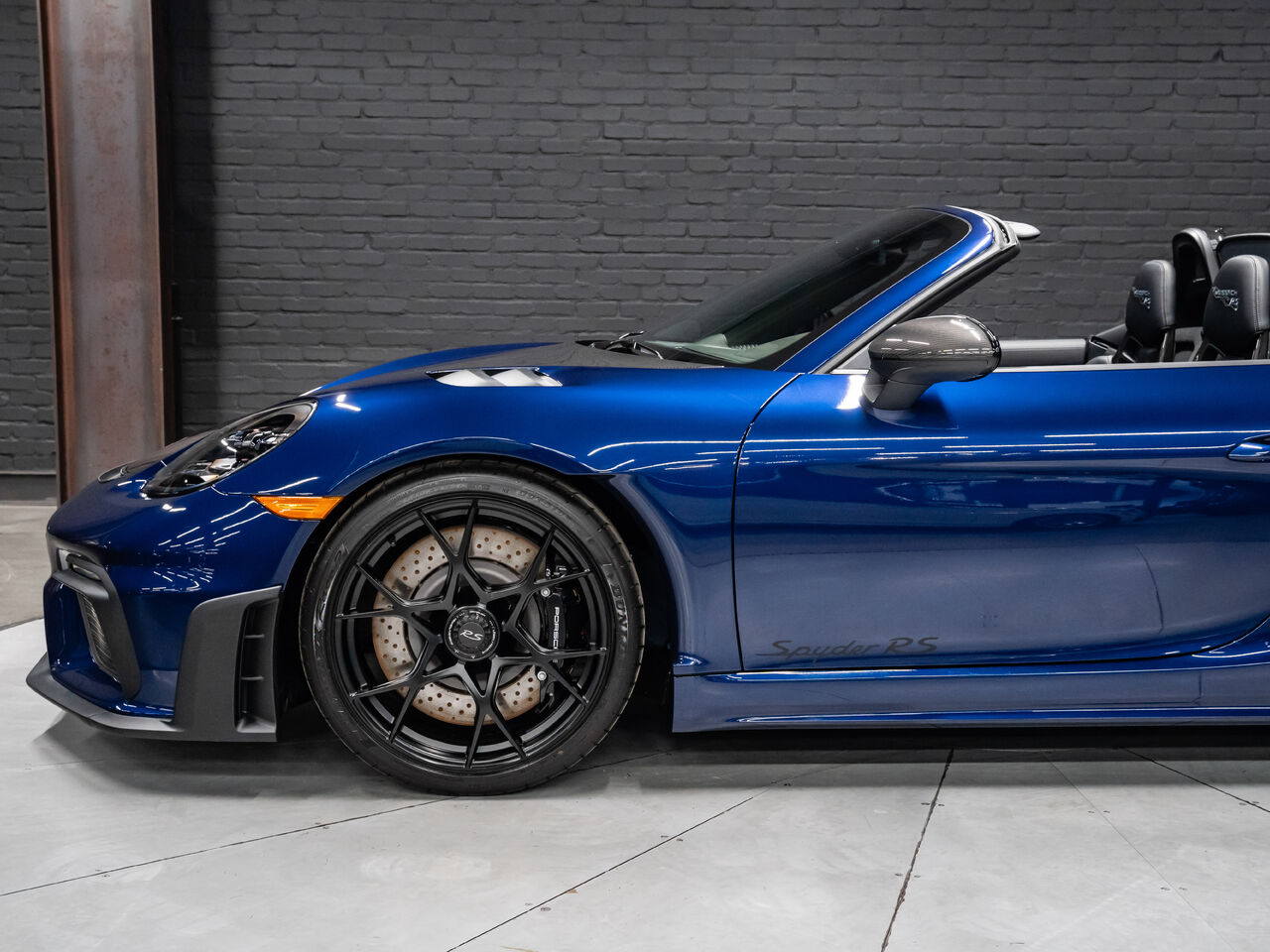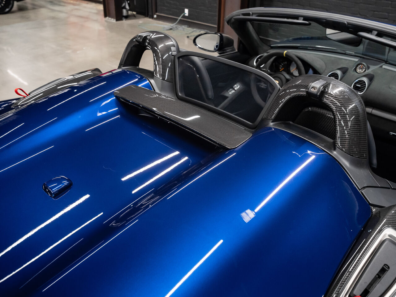The 2025 Porsche 718 Spyder RS in striking Gentian Blue Metallic with a refined Black and Arctic Grey interior is a true masterpiece of performance and design. This one-owner, non-smoker vehicle comes in like-new condition with a clean Carfax, reflecting meticulous care and attention.