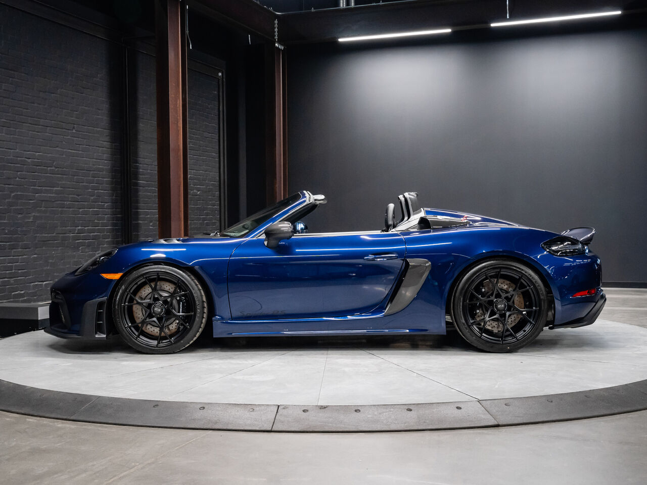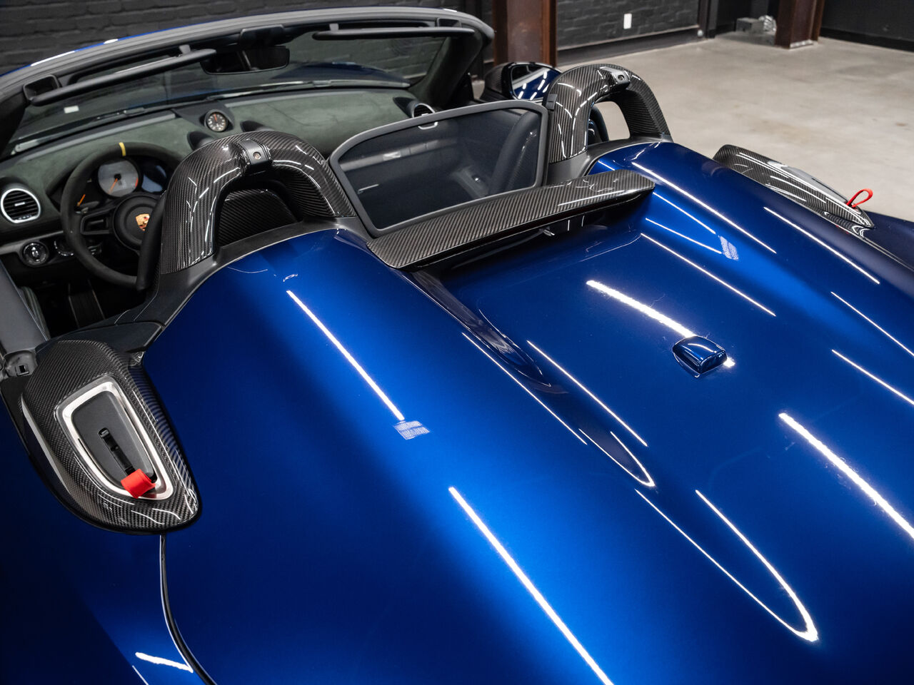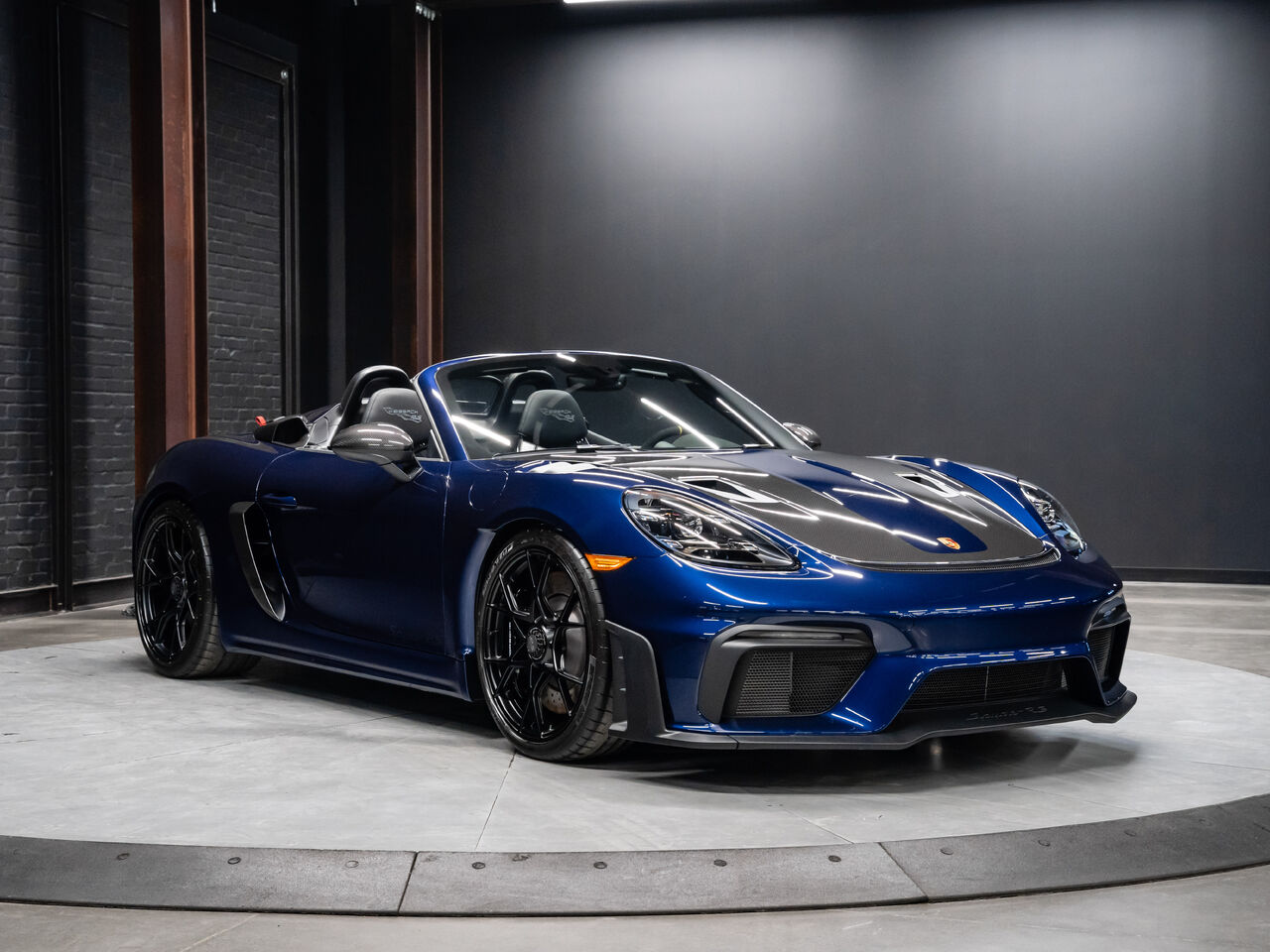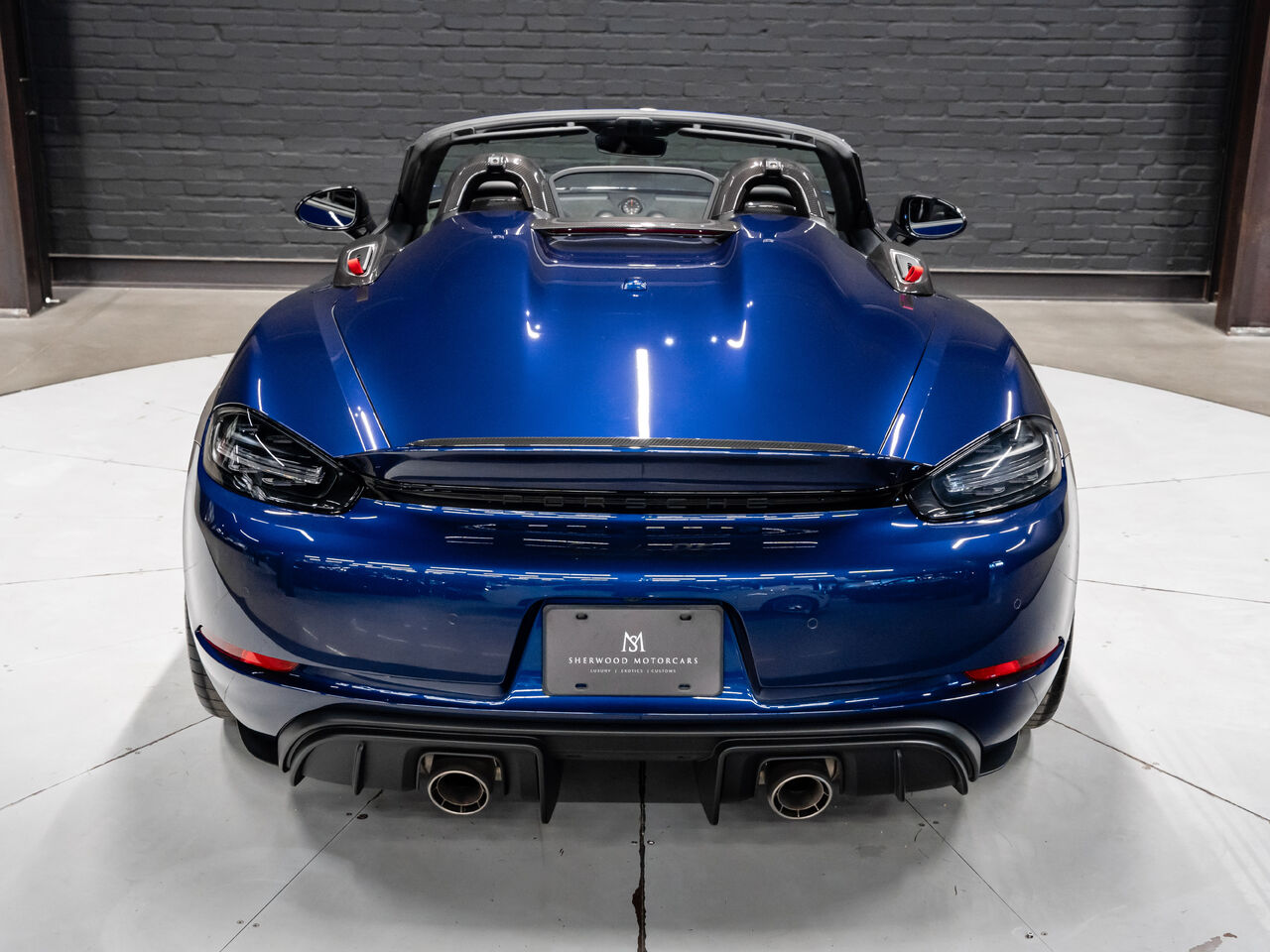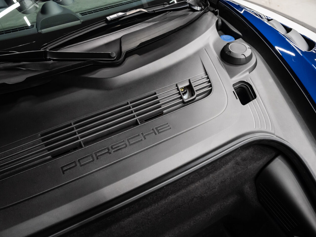 The 2025 Porsche 718 Spyder RS in striking Gentian Blue Metallic with a refined Black and Arctic Grey interior is a true masterpiece of performance and design. This one-owner, non-smoker vehicle comes in like-new condition with a clean Carfax, reflecting meticulous care and attention.