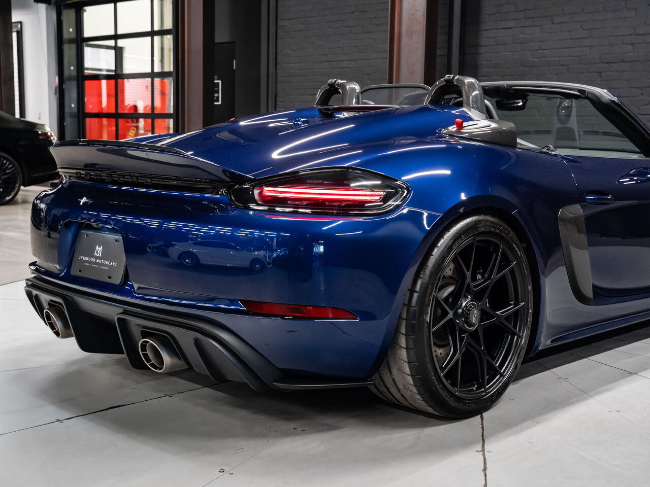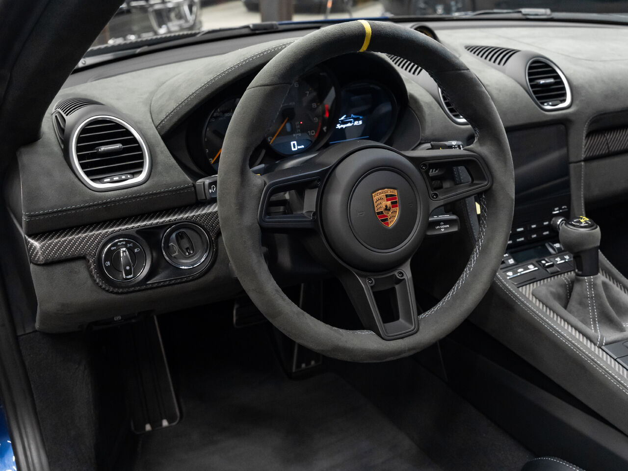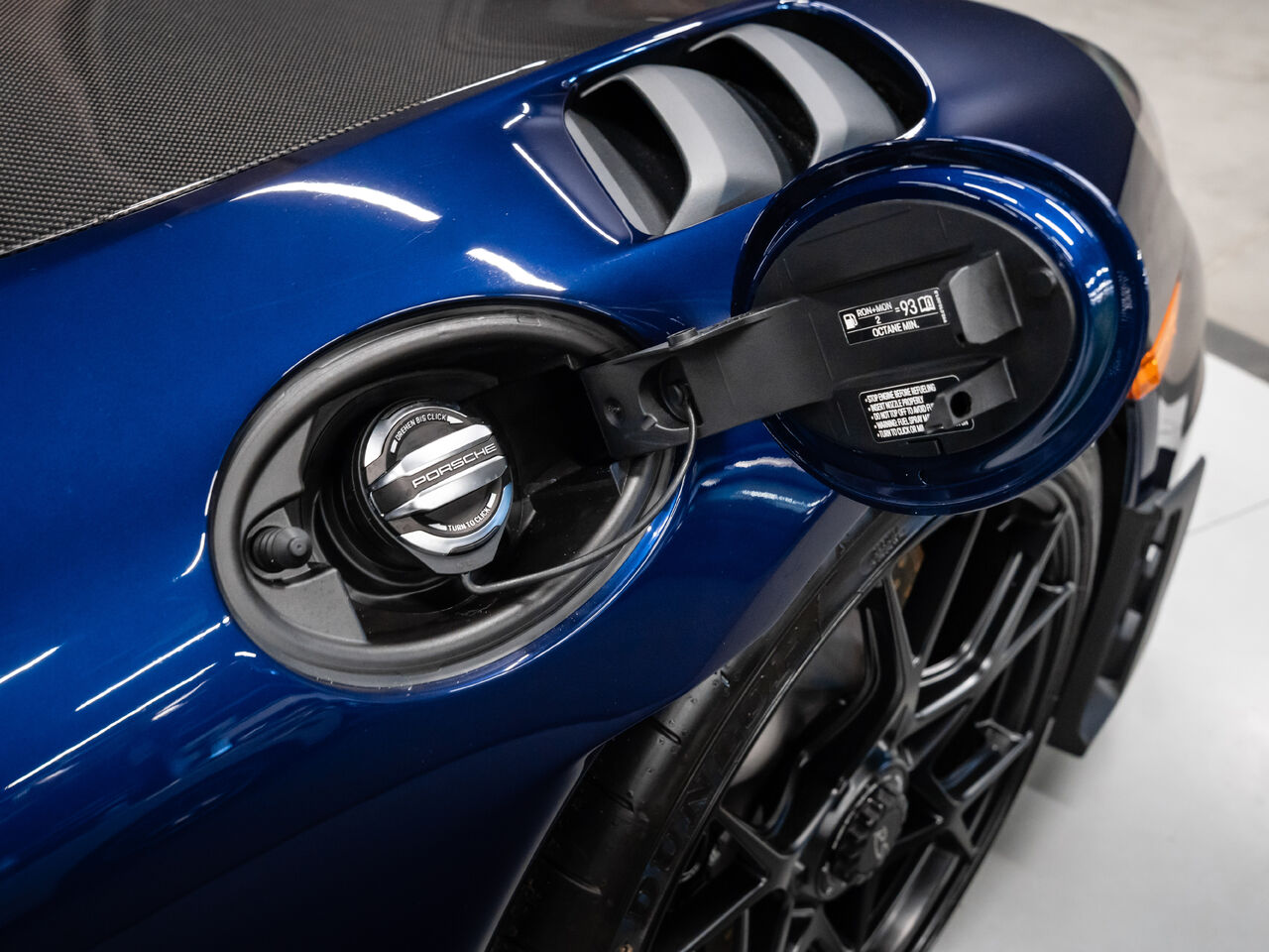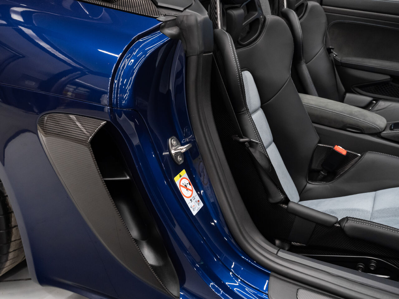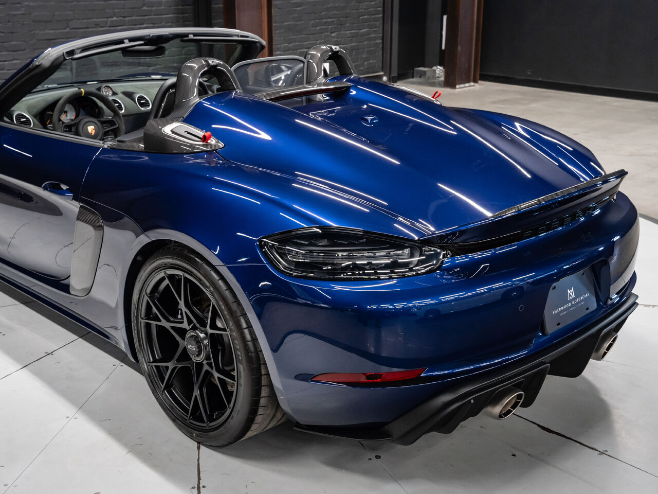 The 2025 Porsche 718 Spyder RS in striking Gentian Blue Metallic with a refined Black and Arctic Grey interior is a true masterpiece of performance and design. This one-owner, non-smoker vehicle comes in like-new condition with a clean Carfax, reflecting meticulous care and attention.