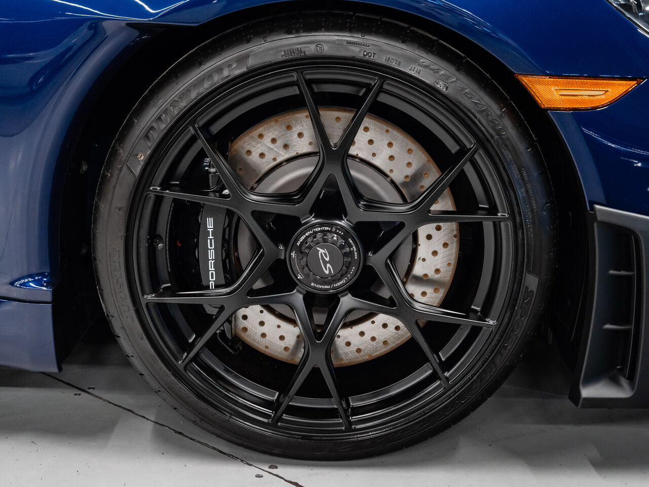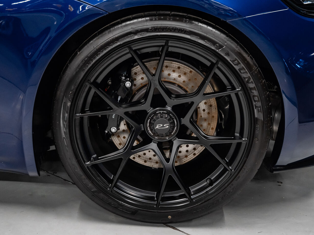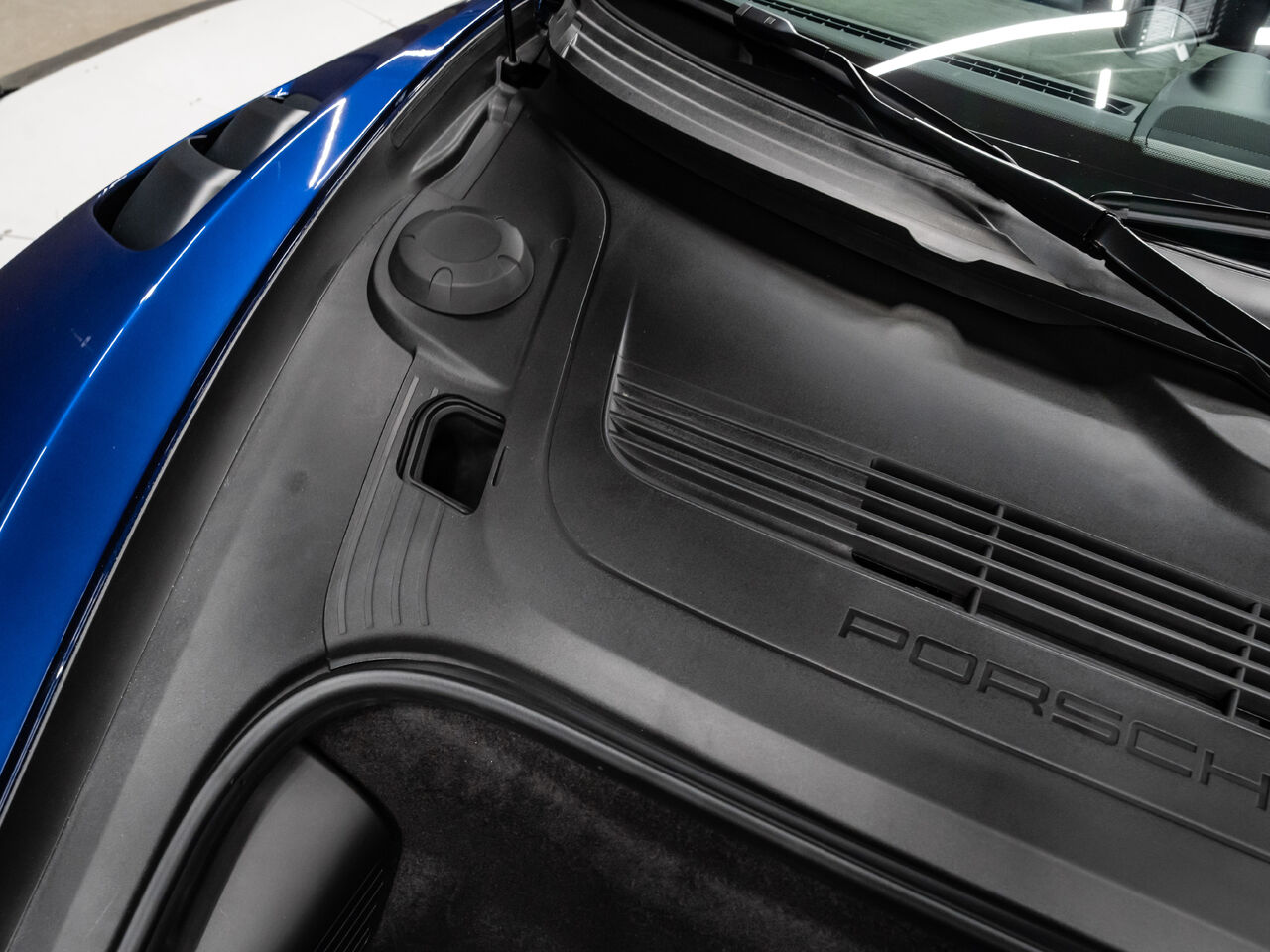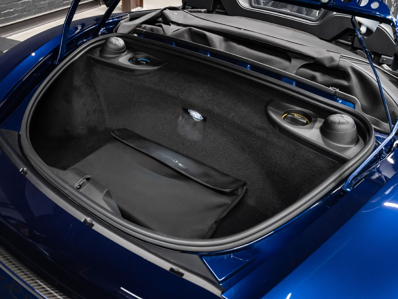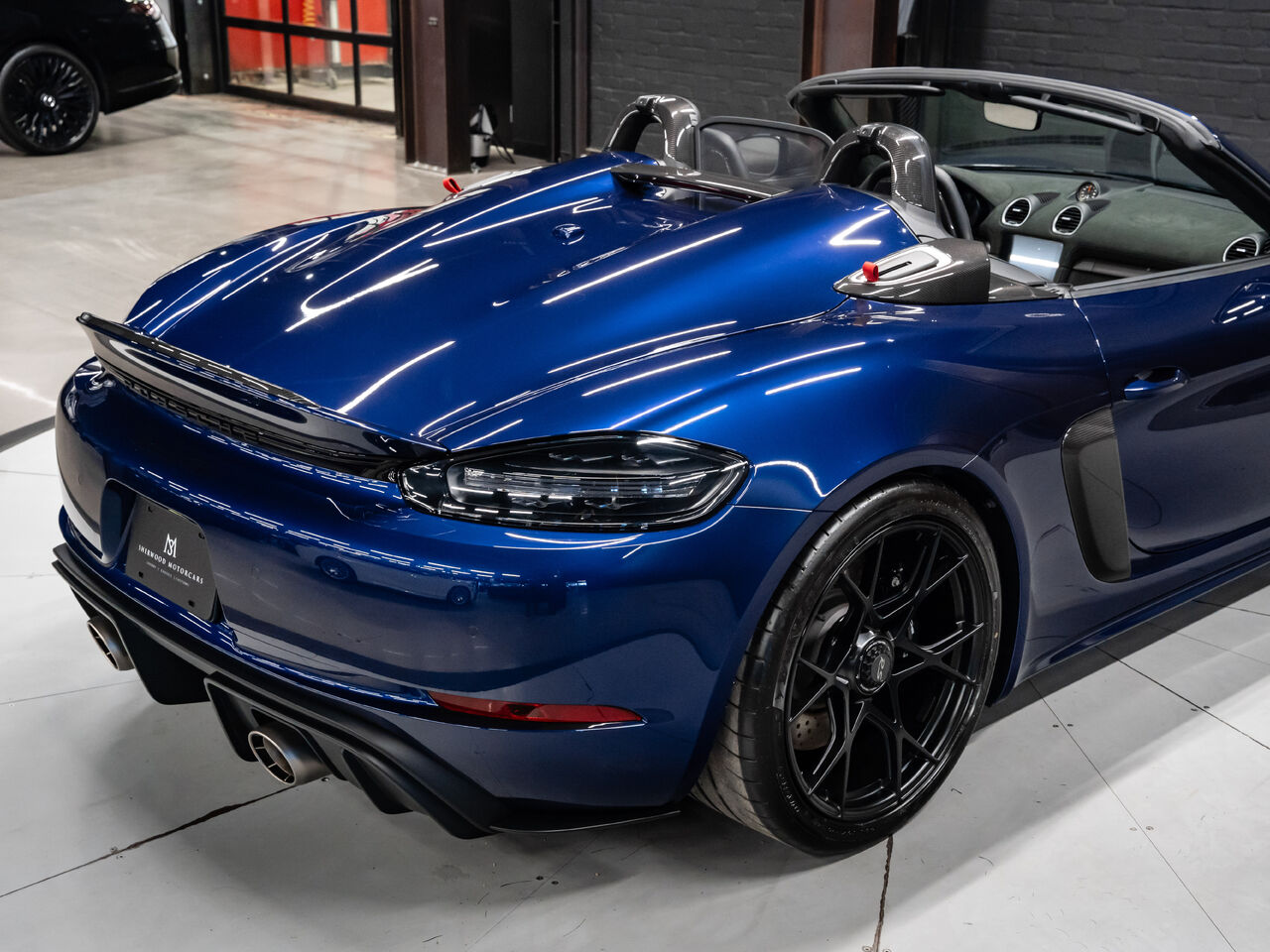 The 2025 Porsche 718 Spyder RS in striking Gentian Blue Metallic with a refined Black and Arctic Grey interior is a true masterpiece of performance and design. This one-owner, non-smoker vehicle comes in like-new condition with a clean Carfax, reflecting meticulous care and attention.