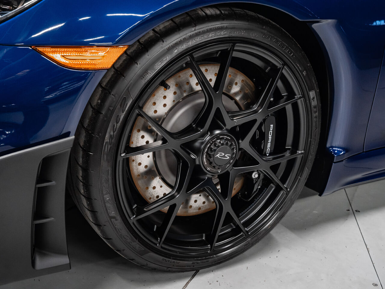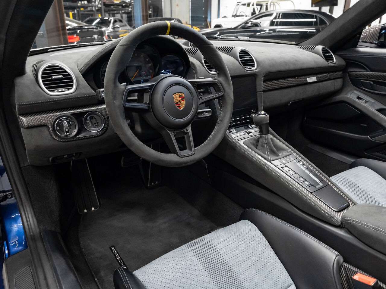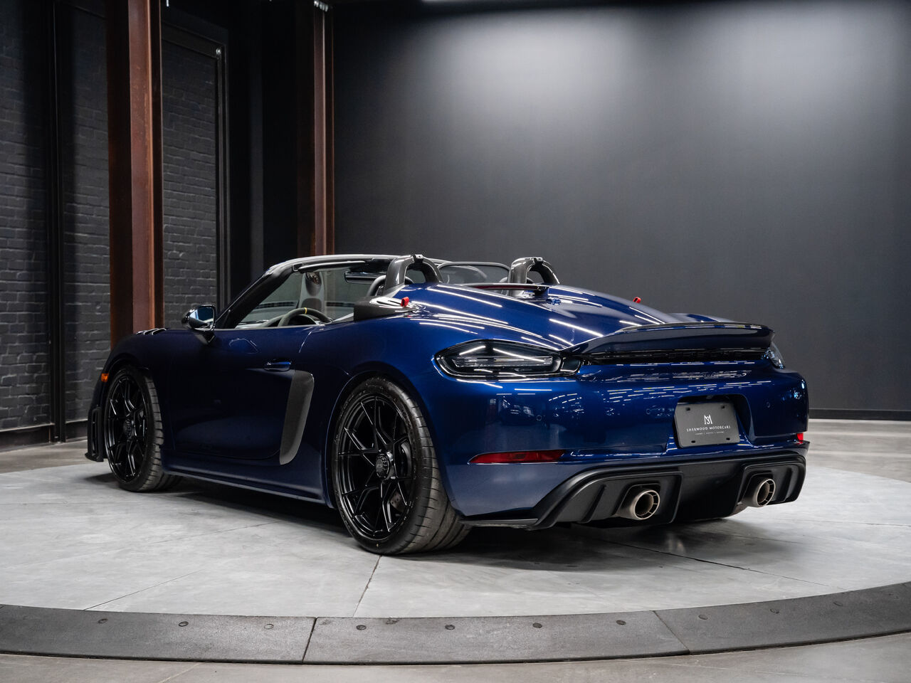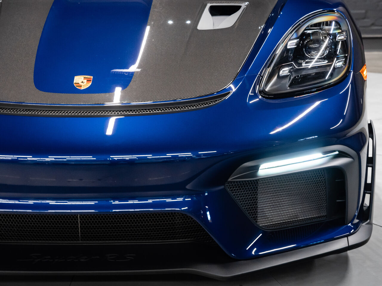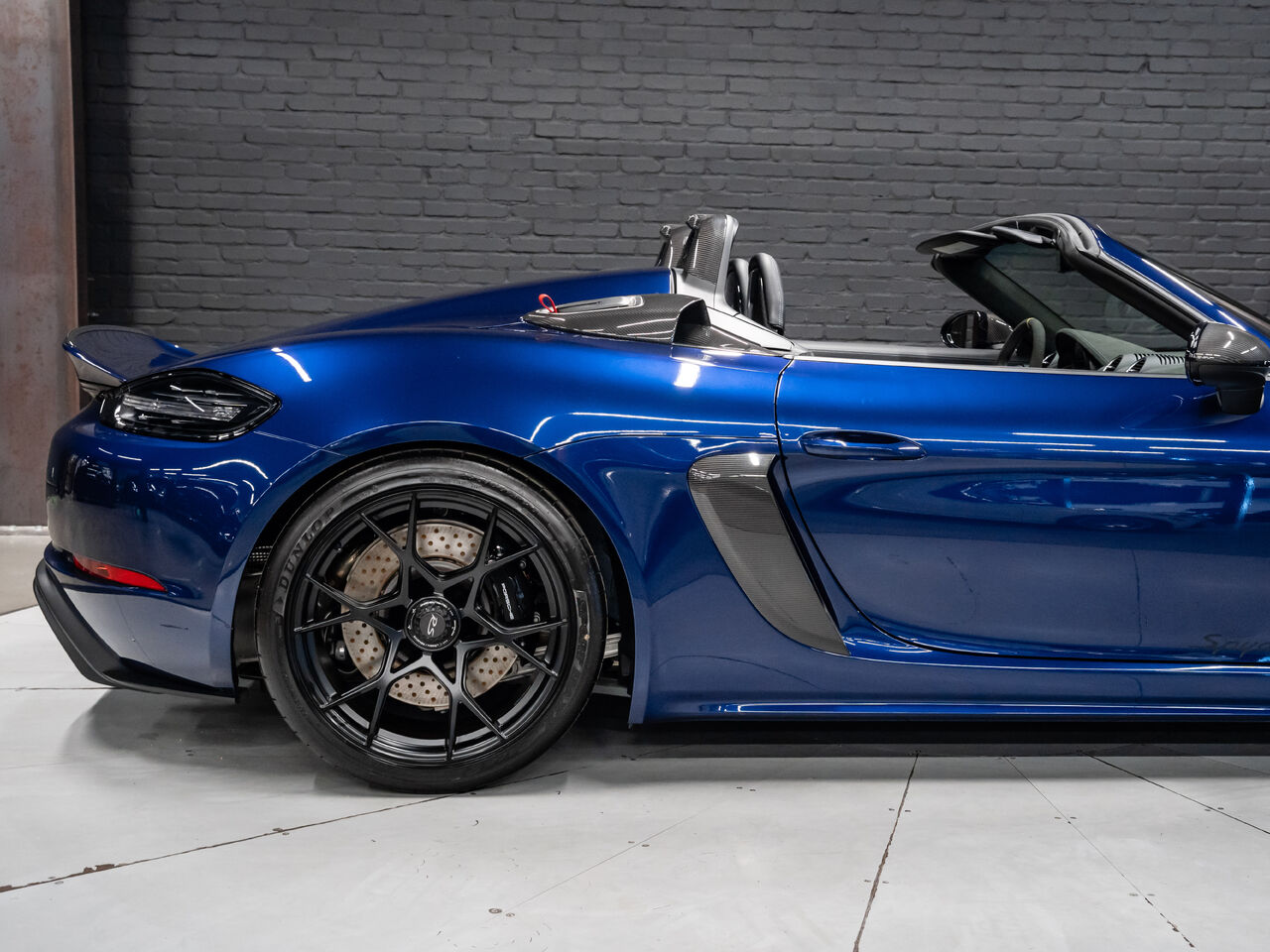 The 2025 Porsche 718 Spyder RS in striking Gentian Blue Metallic with a refined Black and Arctic Grey interior is a true masterpiece of performance and design. This one-owner, non-smoker vehicle comes in like-new condition with a clean Carfax, reflecting meticulous care and attention.