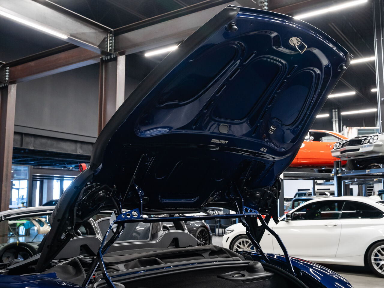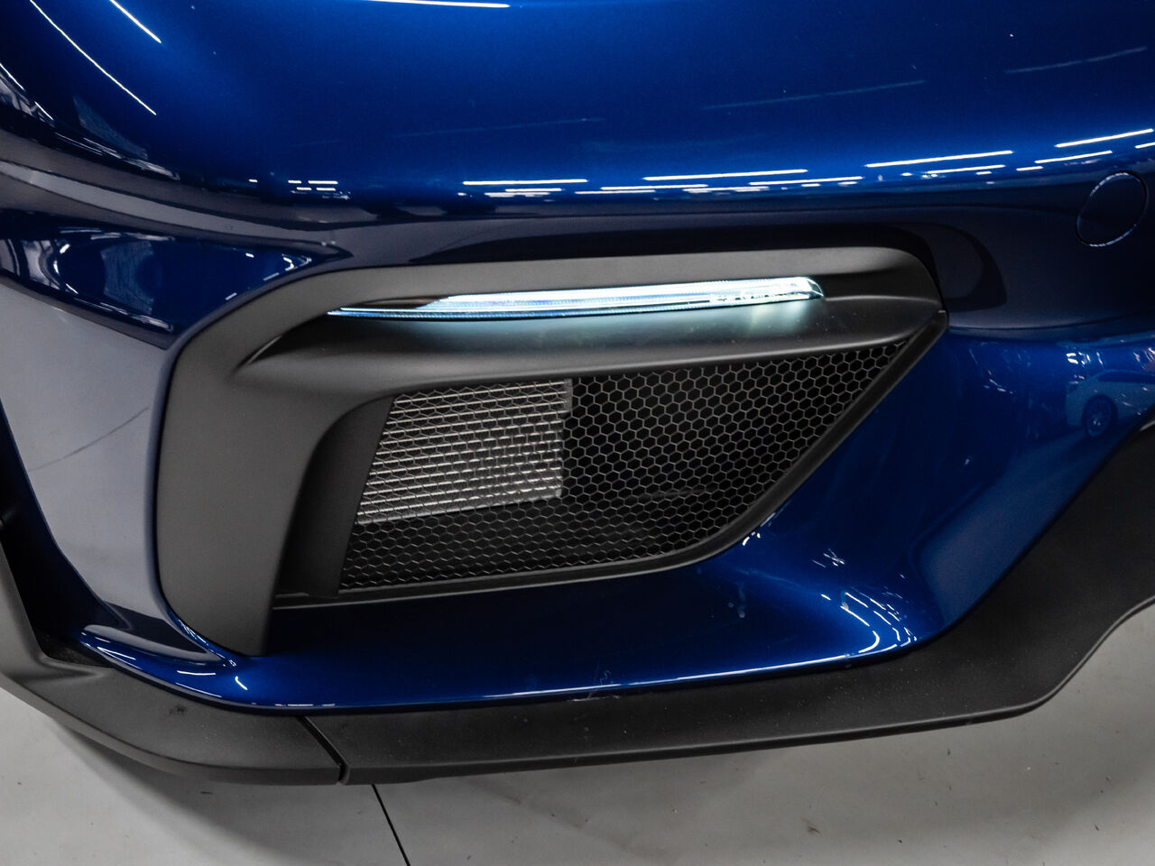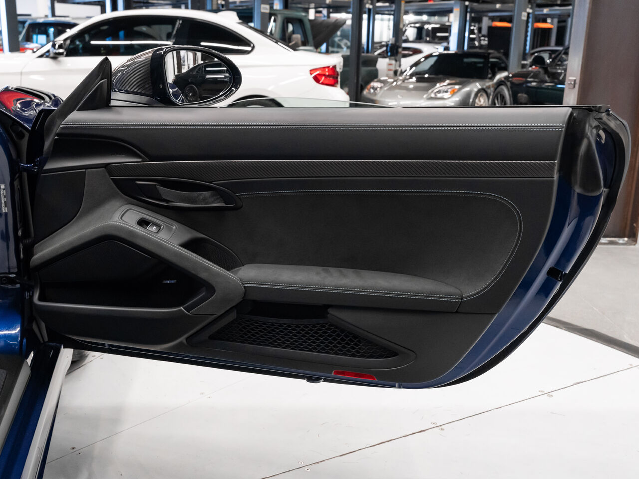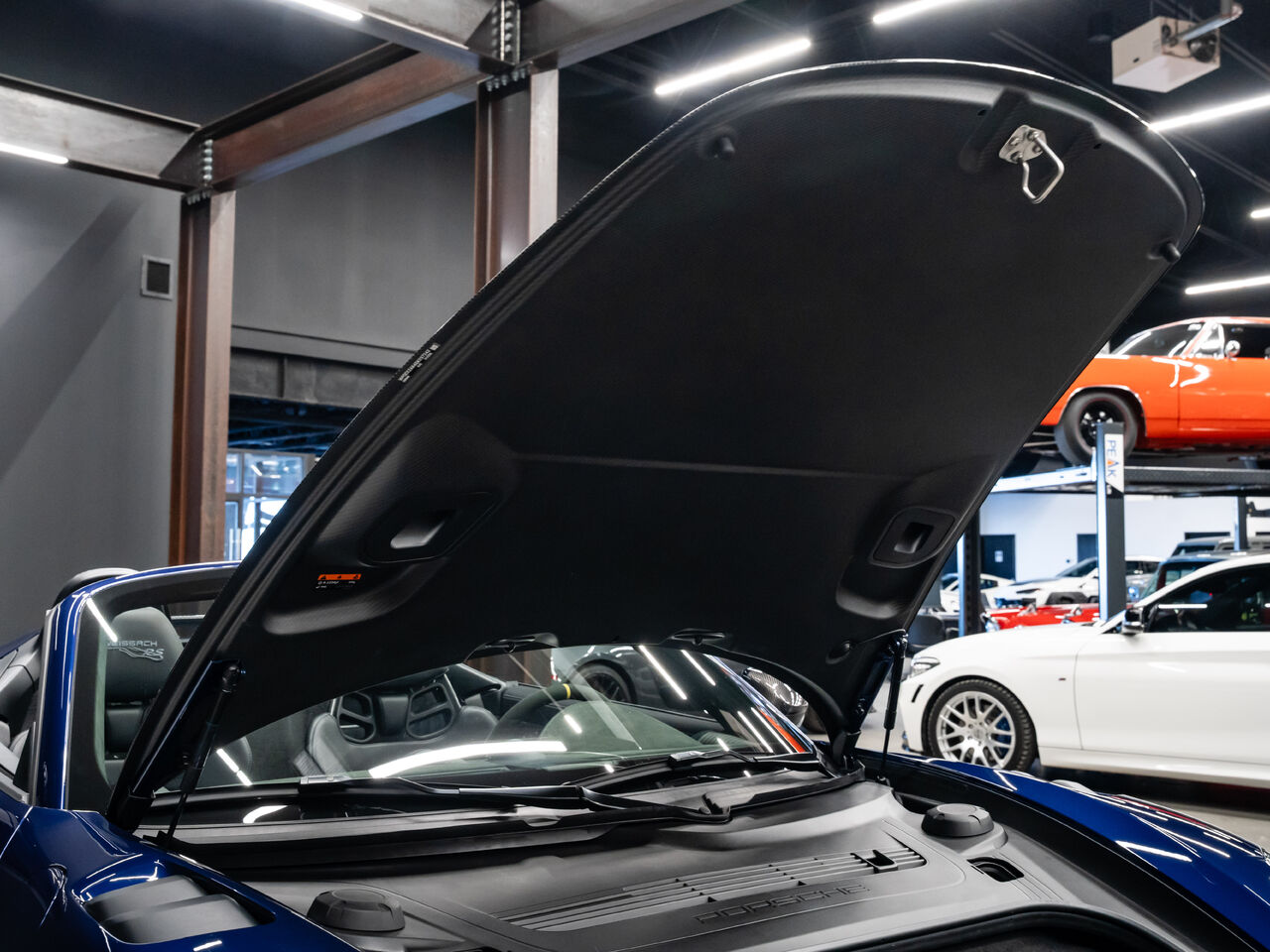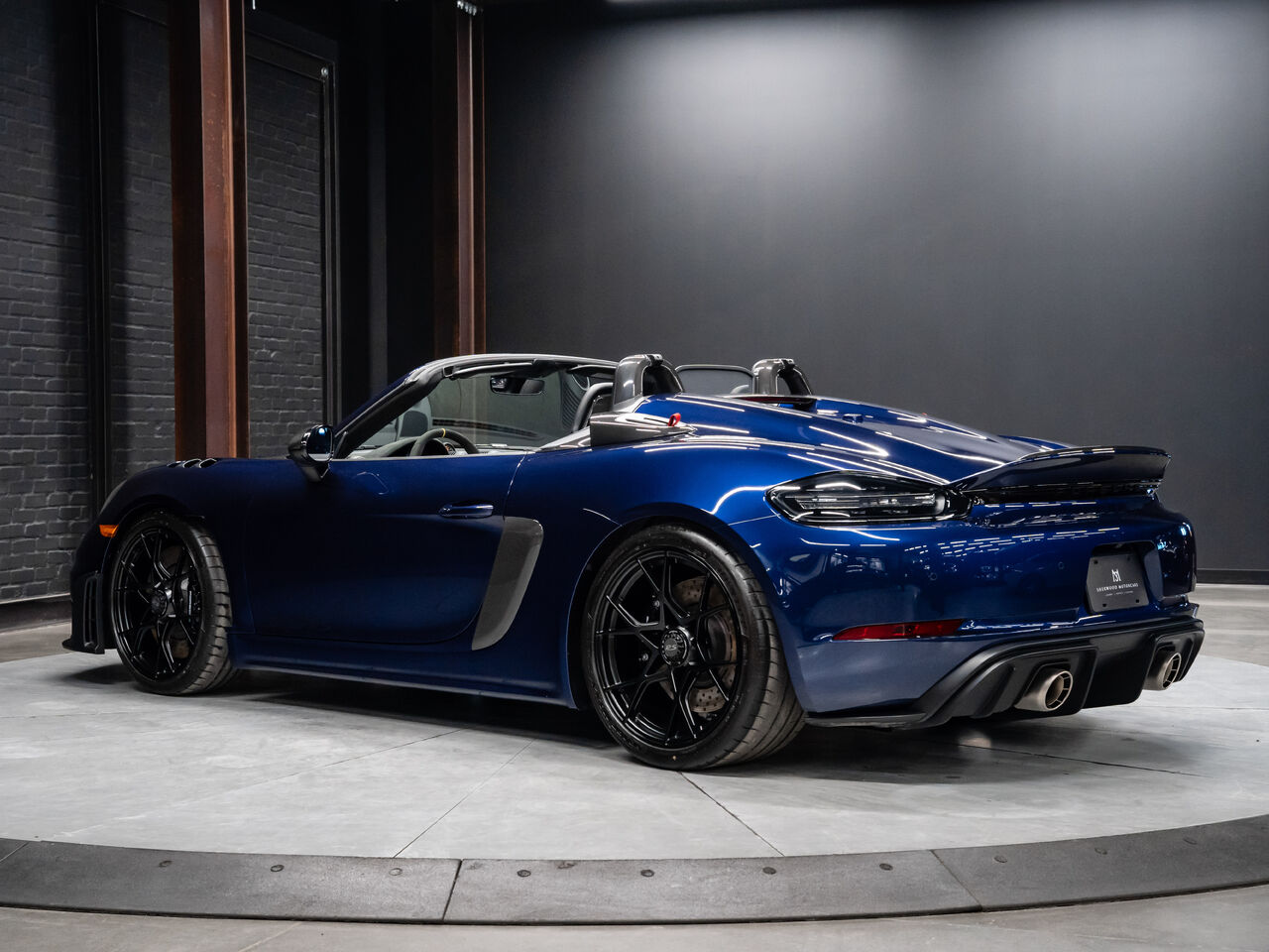 The 2025 Porsche 718 Spyder RS in striking Gentian Blue Metallic with a refined Black and Arctic Grey interior is a true masterpiece of performance and design. This one-owner, non-smoker vehicle comes in like-new condition with a clean Carfax, reflecting meticulous care and attention.