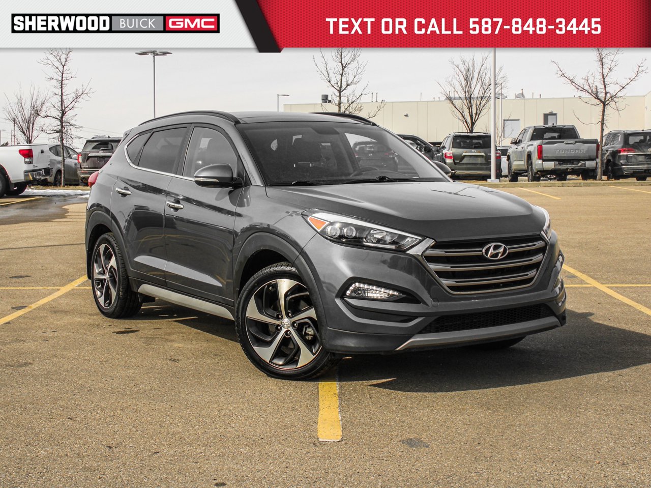 Sunroof | Navigation | Heated Leather Seats/Steering Wheel/Rear Seats | Dual Zone Climate Controls | Infinity Audio | Power Liftgate | Blind Spot Alert | LED Headlights | 8.0 Touchscreen DisplayThe 2017 Hyundai Tucson Limited 1.6T AWD is a stylish and feature-packed compact SUV designed for comfort, convenience, and confident all-weather performance. Powered by a turbocharged 1.6T engine with all-wheel drive, it delivers responsive handling and reliable traction, perfect for city streets, highways, or weekend adventures.Inside, the Tucson Limited offers a premium cabin with heated leather seats, a heated steering wheel, and heated rear seats for all-season comfort. Dual-zone climate controls keep both front and rear passengers comfortable, while a sunroof adds an open, airy feel to the interior. Advanced technology includes navigation, an 8.0 touchscreen display, Infinity audio system, power liftgate, and LED headlights, while safety features like blind spot alert provide added confidence on the road.With its blend of luxury, technology, and all-weather capability, the 2017 Hyundai Tucson Limited 1.6T AWD is an excellent choice for drivers seeking a comfortable, versatile, and well-equipped compact SUV.Talk to our award winning sales staff today and book an appointment or inquire about our services. Sherwood Buick GMC is incredibly proud to be serving Sherwood Park, Edmonton and surrounding areas. Treat yourself - stop by Sherwood Buick GMC today we're located at 10 Automall Road Sherwood Park, Alberta T8H 2N1.AMVIC Licensed Dealership*Pricing includes AMVIC LEVY & Documentation fee. See dealer for details*This vehicle was previously registered in Saskatchewan and has passed its Alberta Out of Province Inspection (OPI).