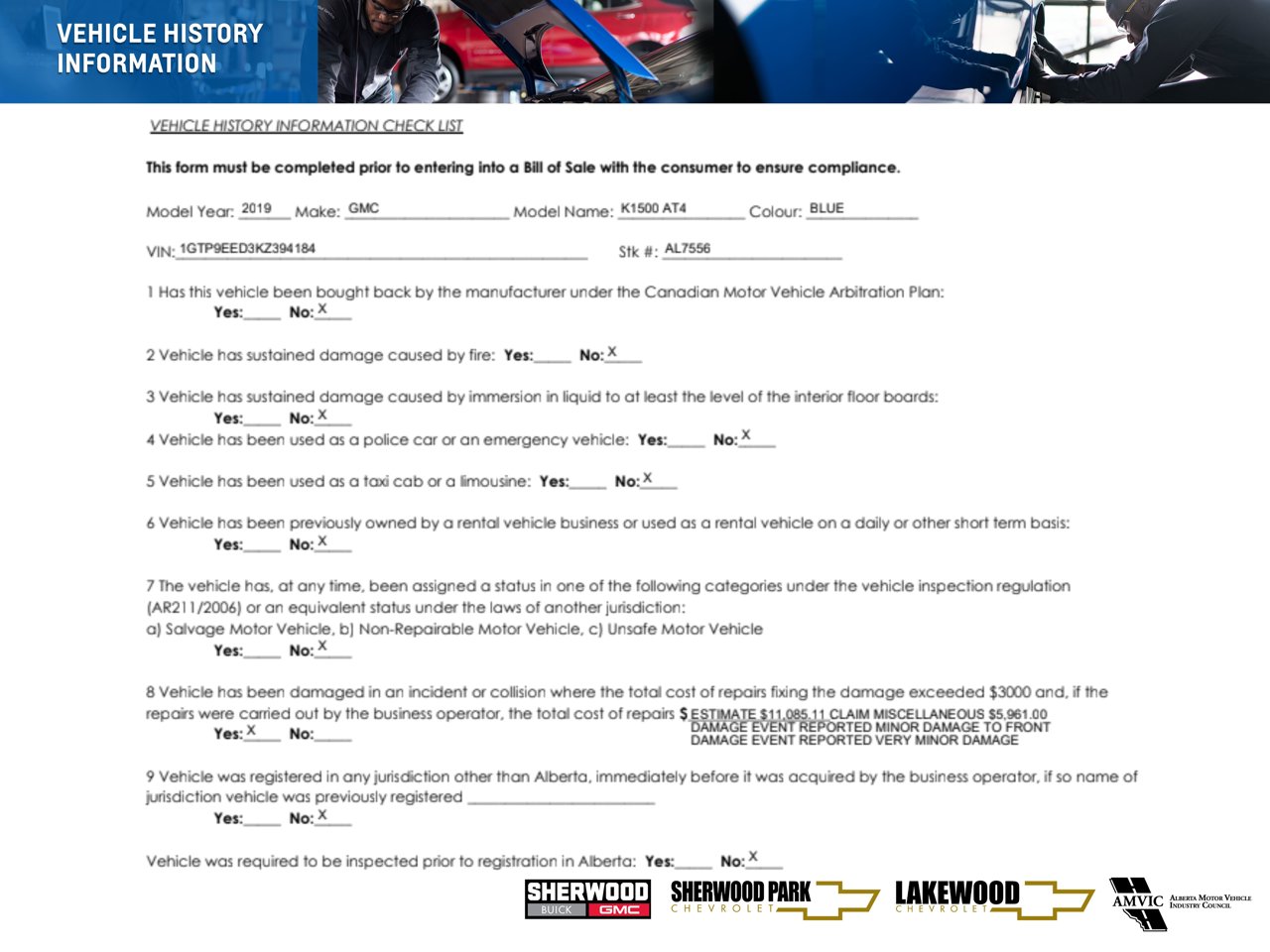 Leather / Centre Console / Heads Up Display / Heated Seats & Wheel / Rear Heated Seats / BOSEThe 2019 GMC Sierra 1500 AT4 5.3L is a premium off-road capable pickup that blends rugged performance with upscale comfort and advanced technology. Powered by a dependable 5.3L V8 engine, this Sierra delivers strong performance and towing capability while maintaining smooth, confident driving on and off the road.As part of GMC's off-road focused AT4 trim, this truck offers a bold design and enhanced capability while still delivering a refined interior experience. Inside, you'll find premium leather seating and a spacious centre console, providing both comfort and practical storage for everyday driving.Comfort features include heated front seats, a heated steering wheel, and heated rear seats, ensuring everyone stays comfortable during colder weather. Technology is highlighted by a convenient Heads-Up Display, which projects important driving information onto the windshield so you can keep your eyes on the road.The cabin is further enhanced by the BOSE premium audio system, delivering rich, high-quality sound throughout the interior for an exceptional listening experience.Combining V8 power, off-road capability, premium comfort, and advanced technology, the 2019 GMC Sierra 1500 AT4 is a versatile truck built for both adventure and everyday driving.Talk to our amazing sales staff today and book an appointment or inquire about our services.Sherwood Park Chevrolet is incredibly proud to be serving Sherwood Park, Edmonton and surrounding areas. Treat yourself - stop by Sherwood Park Chevrolet today we're located at 500 Premier Way Sherwood Park, Alberta T8H 0R5.AMVIC Licensed Dealership*Pricing includes AMVIC LEVY & Documentation fee. See dealer for details*This vehicle has received $5,691.00 worth of repairs due to an accident or collision.