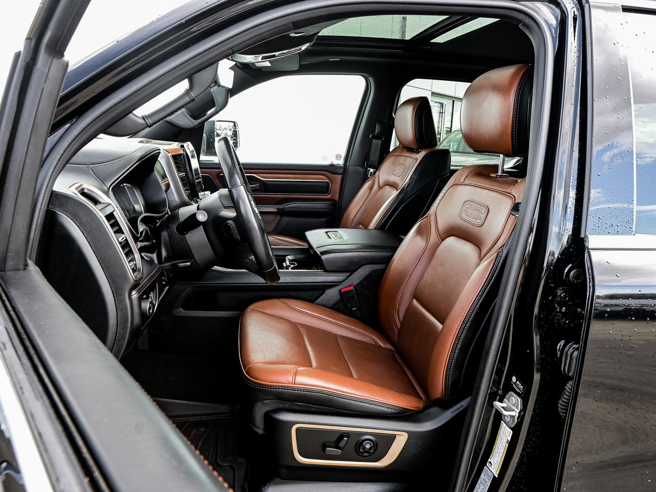 CATTLE TAN/BLACK LEATHER-FACED BUCKET SEATS