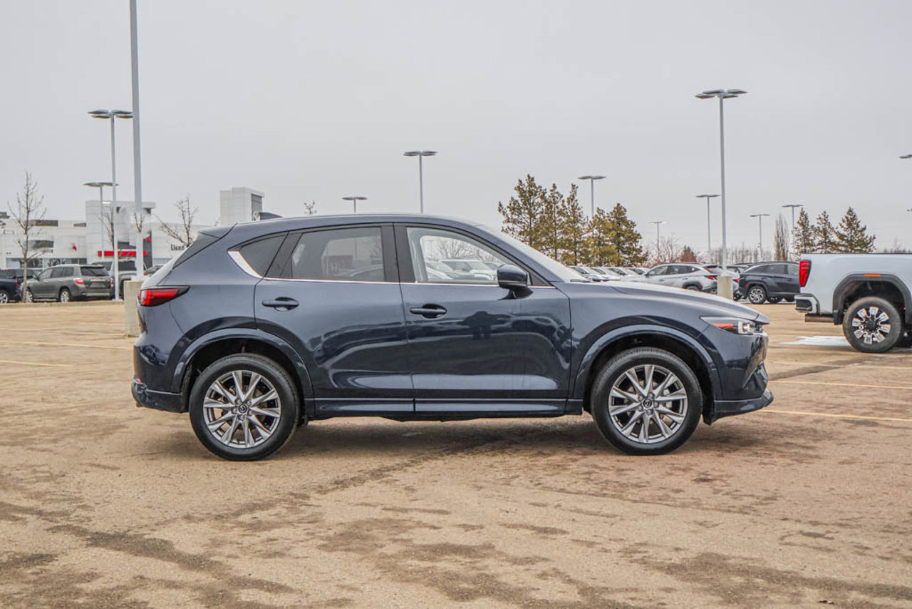Sunroof | Navigation | Heated Leather Seats/Steering Wheel | Dual Zone Climate Controls | Keyless Entry | Power Liftgate | Adaptive Cruise Control | Backup Camera | 19 WheelsExperience style, comfort, and confidence in this 2025 Mazda CX-5 GT AWD, powered by a responsive 2.5L engine and paired with Mazda's renowned all-wheel-drive system. This SUV blends sporty handling with refined features, making it perfect for daily commutes, weekend adventures, or road trips.The exterior impresses with sleek lines and 19 wheels, while the interior offers premium comfort with heated leather seats, a heated steering wheel, and dual-zone climate control for personalized comfort. The power sunroof adds an open-air feel, and the power liftgate makes loading cargo effortless.Stay connected and on course with the integrated navigation system, while safety and convenience features like Adaptive Cruise Control, keyless entry, and a backup camera provide confidence and ease every time you drive.With its combination of refined styling, advanced technology, and all-weather capability, this 2025 Mazda CX-5 GT AWD delivers a driving experience that's both engaging and practical.Talk to our award winning sales staff today and book an appointment or inquire about our services. Sherwood Buick GMC is incredibly proud to be serving Sherwood Park, Edmonton and surrounding areas. Treat yourself - stop by Sherwood Buick GMC today we're located at 10 Automall Road Sherwood Park, Alberta T8H 2N1.AMVIC Licensed Dealership*Pricing includes AMVIC LEVY & Documentation fee. See dealer for details*