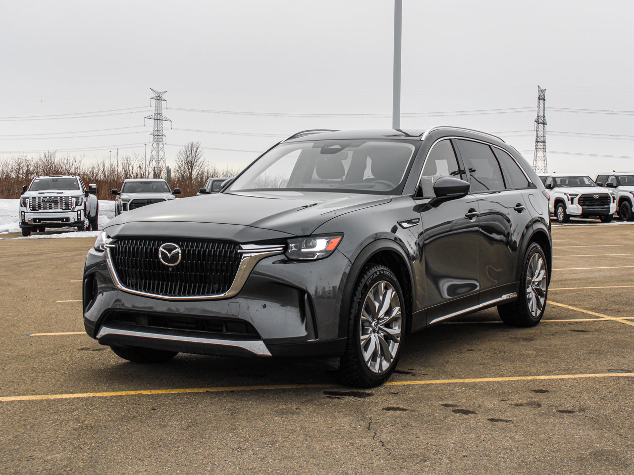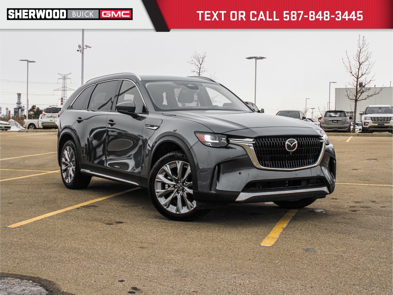 7 Passenger Seating | Sunroof | Heated Leather Seats/Steering Wheel/Rear Seats | Tri-Zone Climate Controls | Power Liftgate | Adaptive Cruise Control | 360 Degree Backup Camera | 21 WheelsThe 2025 Mazda CX-90 GT MHEV 3.3T AWD is a premium midsize SUV that seamlessly blends performance, luxury, and advanced technology. Powered by a robust 3.3-liter turbocharged engine with Mazda's Mild Hybrid Electric Vehicle (MHEV) support and paired with All-Wheel Drive, it delivers spirited acceleration, confident handling, and enhanced efficiency for everyday driving and longer journeys.Designed to accommodate your whole crew, this CX-90 features 7-passenger seating with a thoughtfully crafted interior. Front and rear heated leather seats provide exceptional comfort, complemented by a heated steering wheel for chilly mornings. Tri-zone climate controls ensure personalized comfort for all three rows, keeping everyone comfortable no matter the weather.The panoramic sunroof adds an airy feel to the cabin, while the power liftgate offers effortless access to cargo space---ideal for errands, road trips, and gear hauling. Adaptive Cruise Control enhances highway driving convenience, while the 360-degree backup camera gives you complete visibility around the vehicle for confident maneuvering in tight spaces.Finishing touches like striking 21 wheels give the CX-90 GT a bold and sophisticated presence on the road. If you're looking for a capable, well-equipped SUV that combines premium comfort with modern performance and smart features, the 2025 Mazda CX-90 GT MHEV AWD delivers in every way.Talk to our award winning sales staff today and book an appointment or inquire about our services. Sherwood Buick GMC is incredibly proud to be serving Sherwood Park, Edmonton and surrounding areas. Treat yourself - stop by Sherwood Buick GMC today we're located at 10 Automall Road Sherwood Park, Alberta T8H 2N1.AMVIC Licensed Dealership*Pricing includes AMVIC LEVY & Documentation fee. See dealer for details*