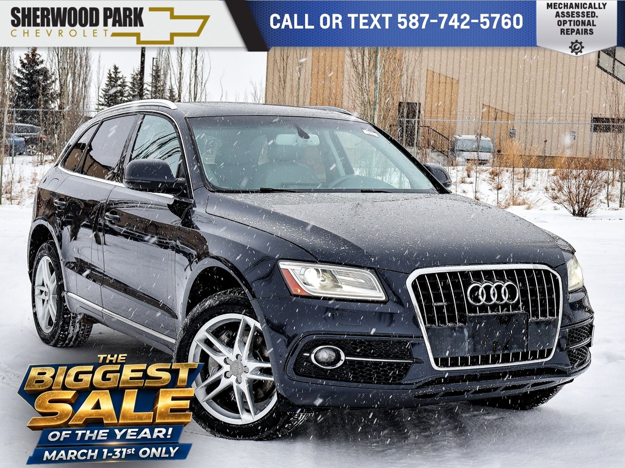 Leather / Quattro / Power Seats / Bluetooth / Sunroof / Heated SeatsThe 2014 Audi Q5 Progressiv 3.0L TDI is a sophisticated and capable luxury crossover that blends refined comfort with versatile performance. Powered by a torquey 3.0-litre TDI diesel engine and equipped with Audi's renowned Quattro all-wheel drive system, it delivers confident traction and smooth power delivery in a wide range of driving conditions --- from city streets to open highways and light off-road terrain.Step inside and you'll find a well-crafted interior defined by premium leather seating and supportive power seats that help make every journey comfortable, whether you're heading on a long trip or just running errands around town. The cabin's thoughtful design is enhanced by a sunroof that lets in natural light and fresh air, and heated seats that keep you warm and cozy on cooler days.Modern convenience features like Bluetooth connectivity allow seamless hands-free calling and audio streaming, keeping you connected and entertained wherever you go. With its blend of luxury touches, dependable performance, and all-weather capability, the 2014 Audi Q5 Progressiv TDI offers a refined driving experience that stands the test of time.Talk to our amazing sales staff today and book an appointment or inquire about our services.Sherwood Park Chevrolet is incredibly proud to be serving Sherwood Park, Edmonton and surrounding areas. Treat yourself - stop by Sherwood Park Chevrolet today we're located at 500 Premier Way Sherwood Park, Alberta T8H 0R5.AMVIC Licensed Dealership*Pricing includes AMVIC LEVY & Documentation fee. See dealer for details*