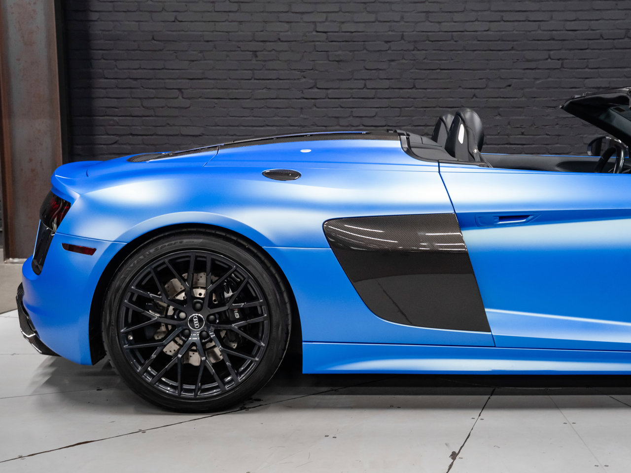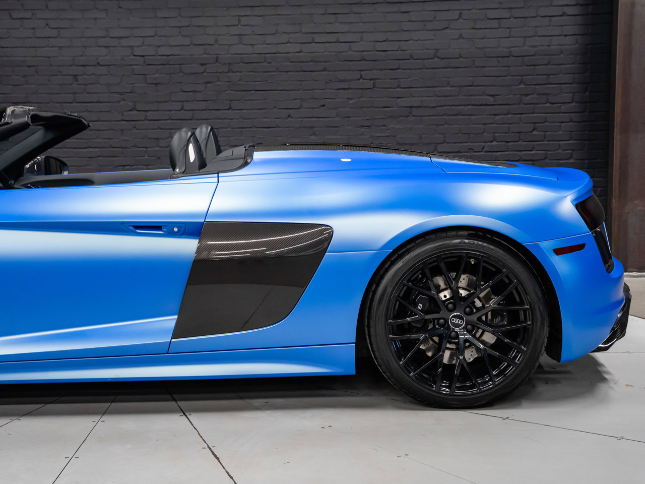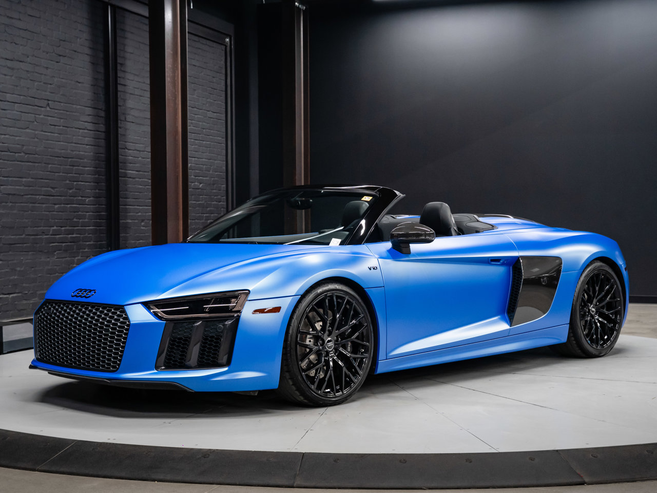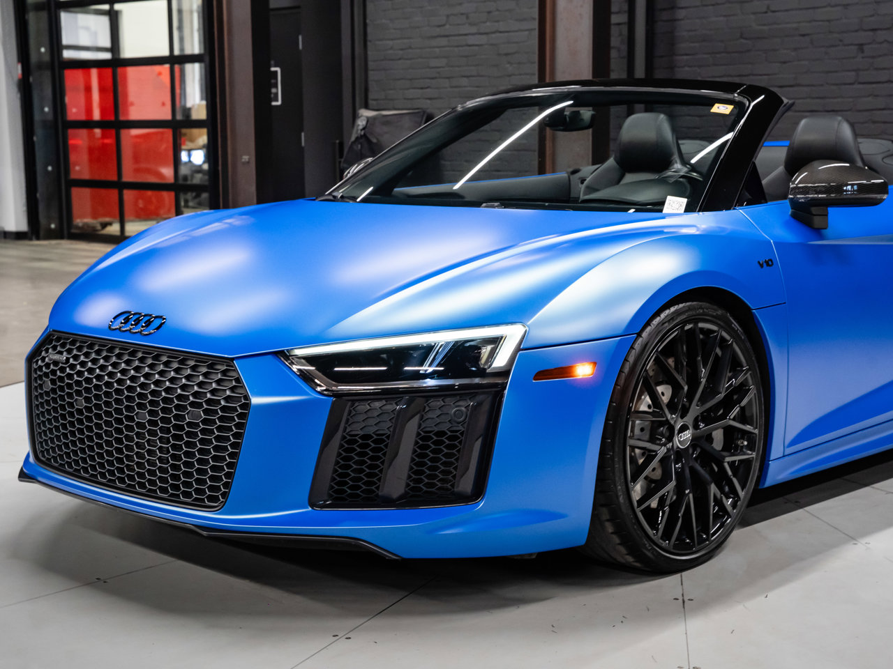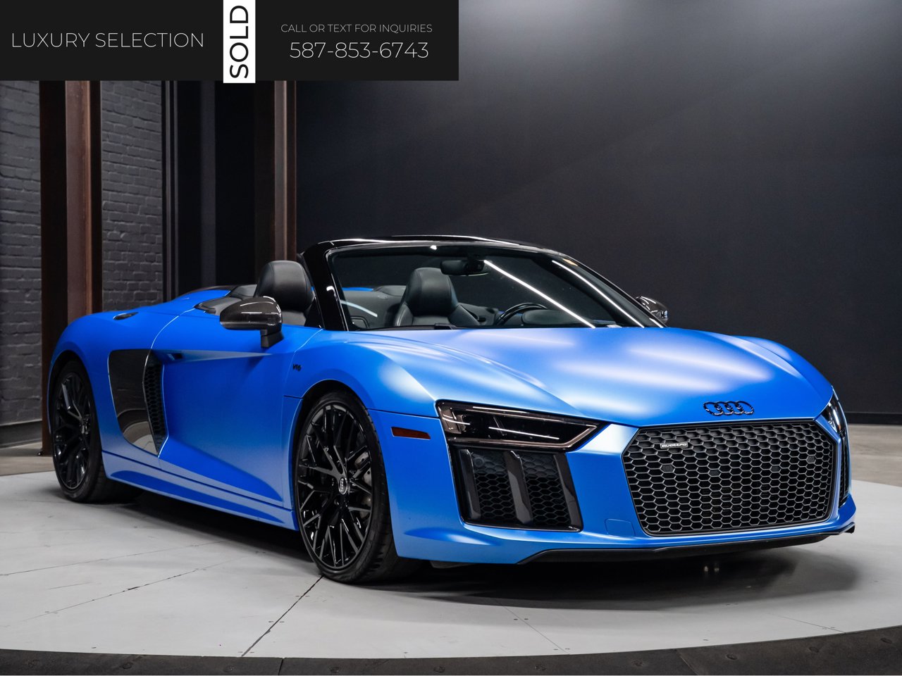 Unleash supercar performance with this 2017 Audi R8 V10 Quattro Spyder, powered by a naturally aspirated 5.2L V10 delivering breathtaking sound and speed. Originally finished in Tango Red Metallic, it now wears a striking matte blue vinyl wrap for a custom, head-turning presence.This R8 is enhanced with a titanium valved exhaust that amplifies the V10's roar, along with carbon fiber exterior accents and carbon interior trim for a true motorsport feel. Inside, you'll find heated seats, navigation, and a premium Bang & Olufsen sound system, blending everyday comfort with exotic performance.With its open-top Spyder design, Quattro all-wheel drive, and aggressive styling, this Audi R8 delivers a perfect mix of precision engineering, luxury, and visceral driving excitement.This vehicle is presented by Sherwood Motorcars located at 155-3001 Buckingham Drive, Sherwood Park, AB T8H 0X5. National and International Shipping Available - Ask us about our import and export options. For more details, please visit us in store, or call/text 587-782-4153. AMVIC Licensed Dealer.Pricing includes AMVIC & documentation fee. See Dealer for Details [Read more] [Read less]