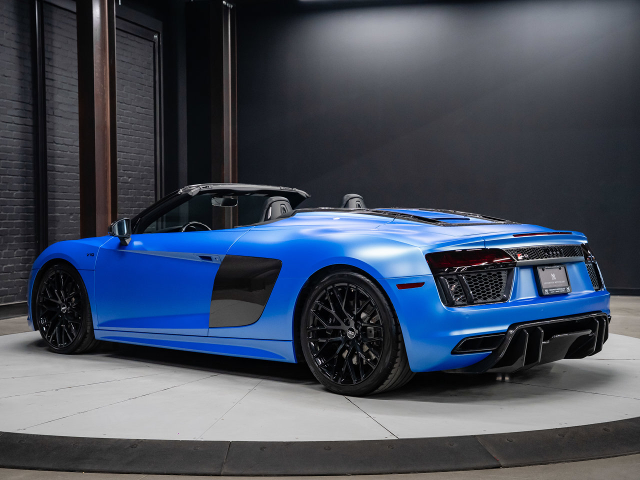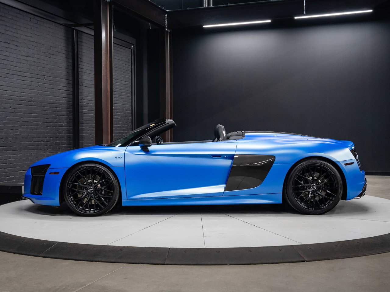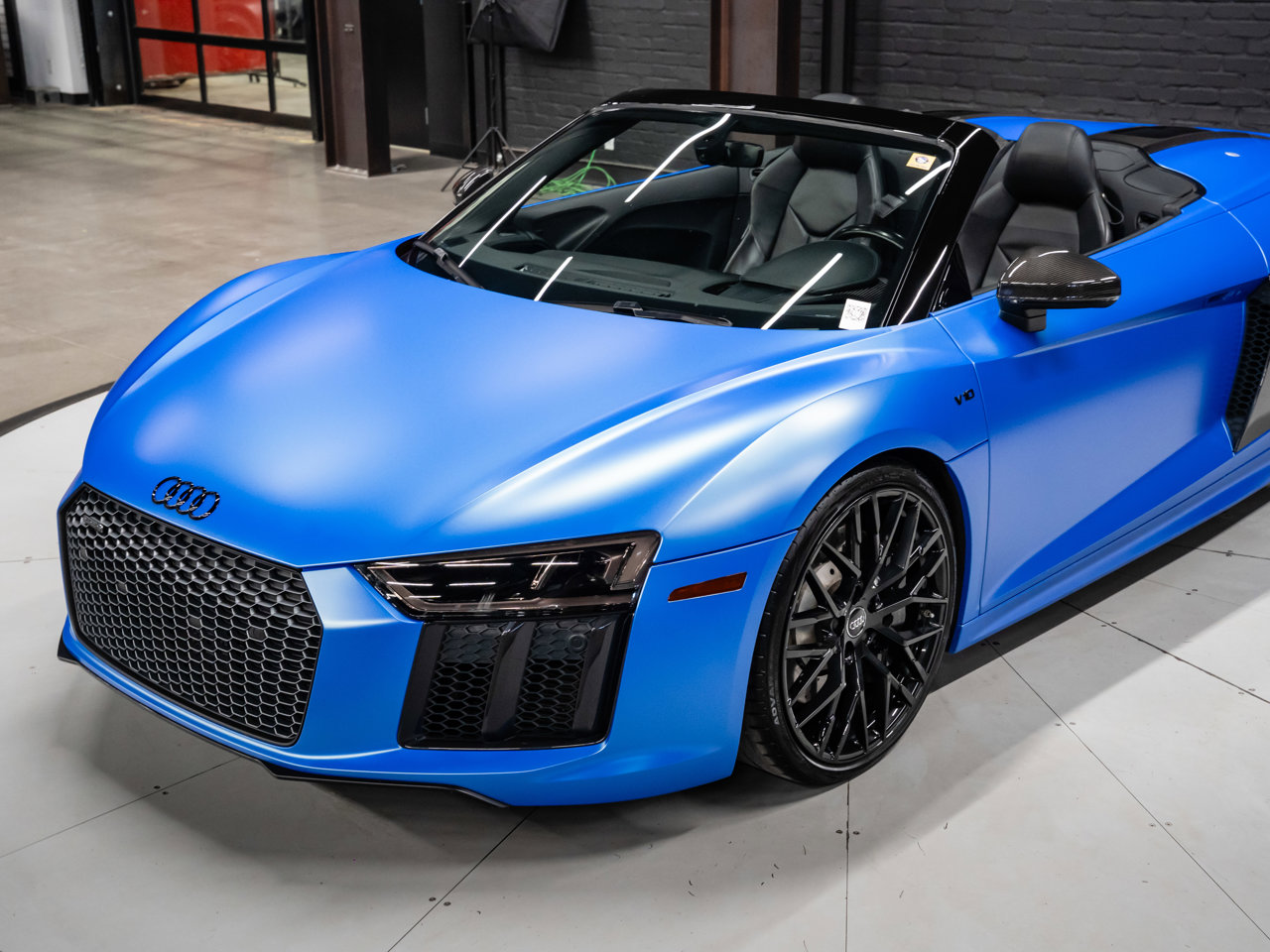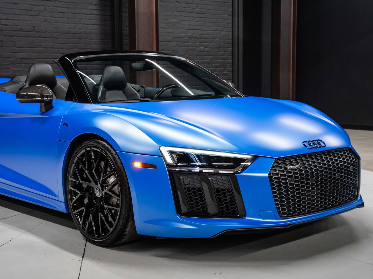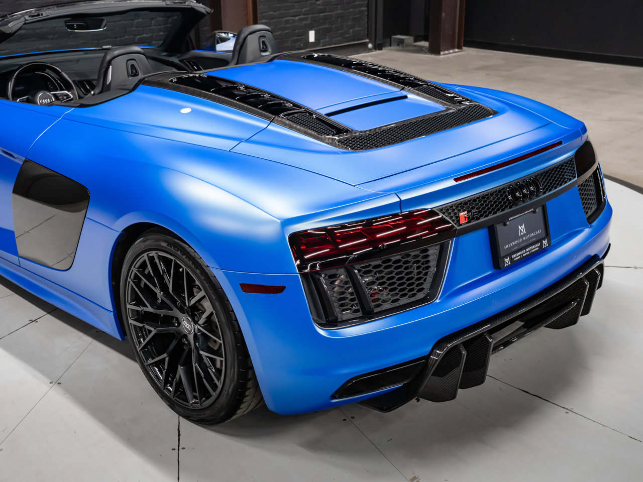 Unleash supercar performance with this 2017 Audi R8 V10 Quattro Spyder, powered by a naturally aspirated 5.2L V10 delivering breathtaking sound and speed. Originally finished in Tango Red Metallic, it now wears a striking matte blue vinyl wrap for a custom, head-turning presence.This R8 is enhanced with a titanium valved exhaust that amplifies the V10's roar, along with carbon fiber exterior accents and carbon interior trim for a true motorsport feel. Inside, you'll find heated seats, navigation, and a premium Bang & Olufsen sound system, blending everyday comfort with exotic performance.With its open-top Spyder design, Quattro all-wheel drive, and aggressive styling, this Audi R8 delivers a perfect mix of precision engineering, luxury, and visceral driving excitement.This vehicle is presented by Sherwood Motorcars located at 155-3001 Buckingham Drive, Sherwood Park, AB T8H 0X5. National and International Shipping Available - Ask us about our import and export options. For more details, please visit us in store, or call/text 587-782-4153. AMVIC Licensed Dealer.Pricing includes AMVIC & documentation fee. See Dealer for Details [Read more] [Read less]