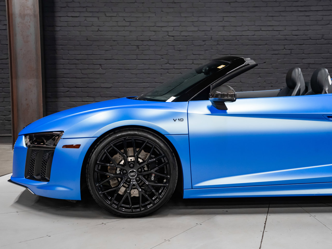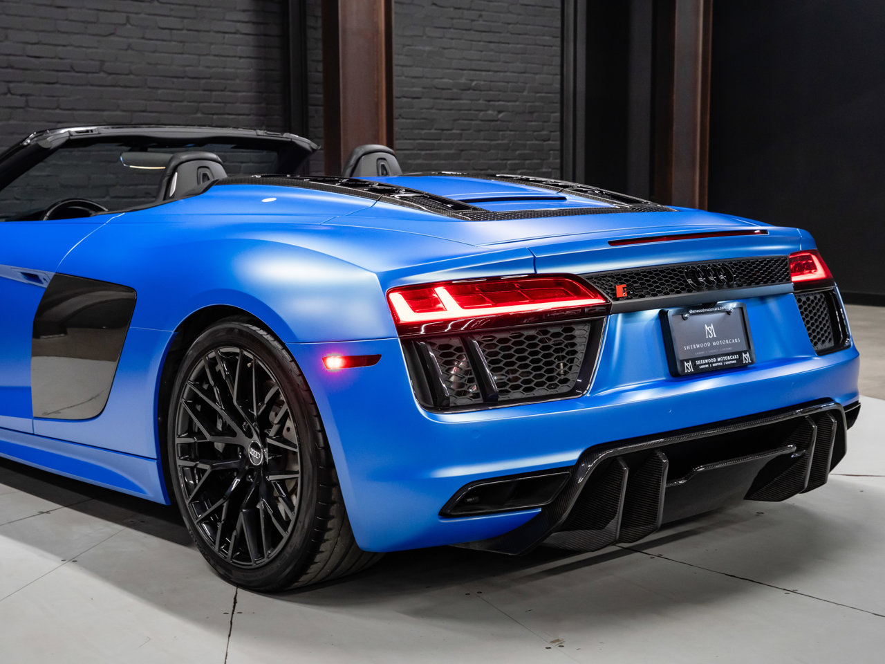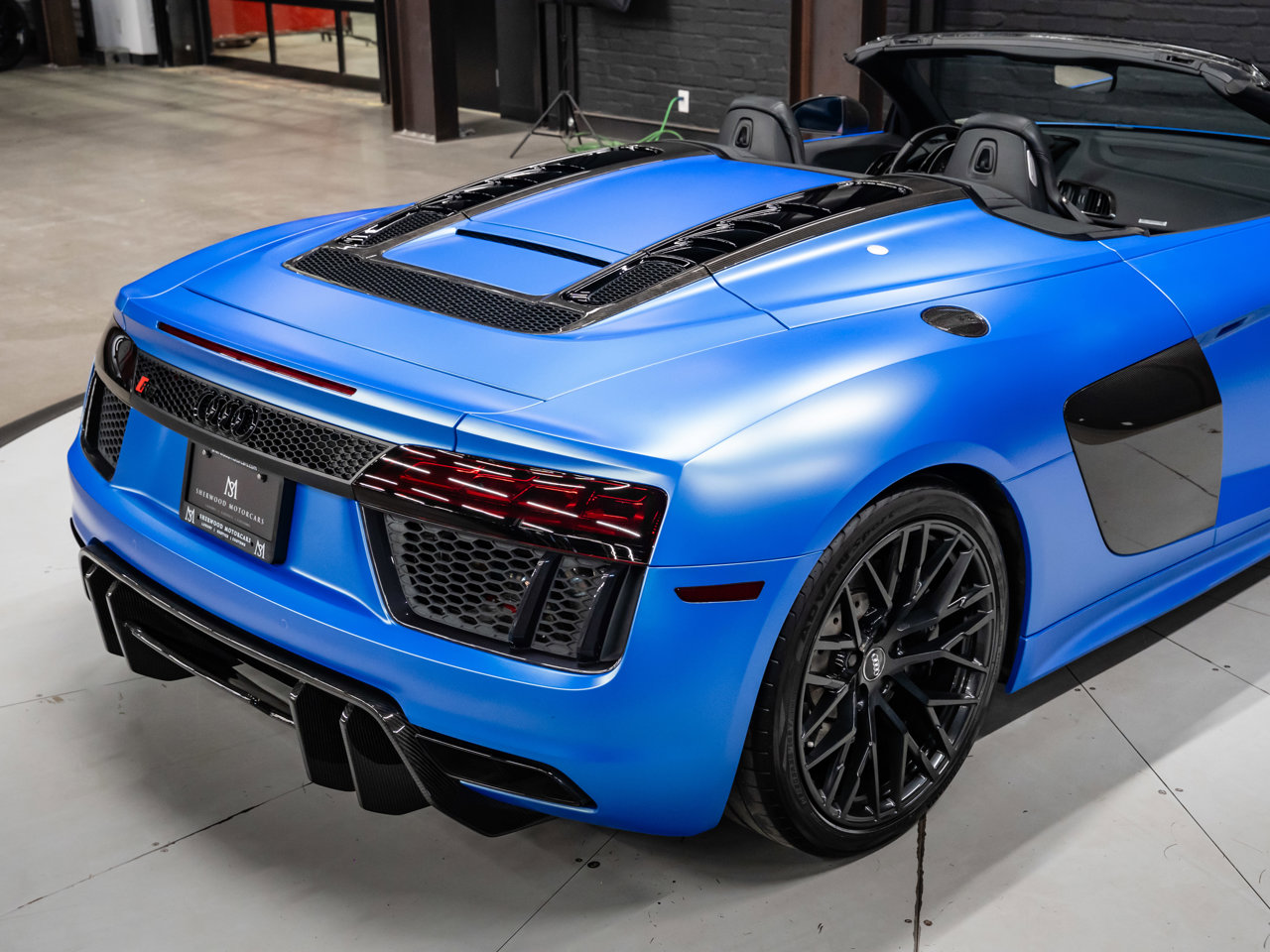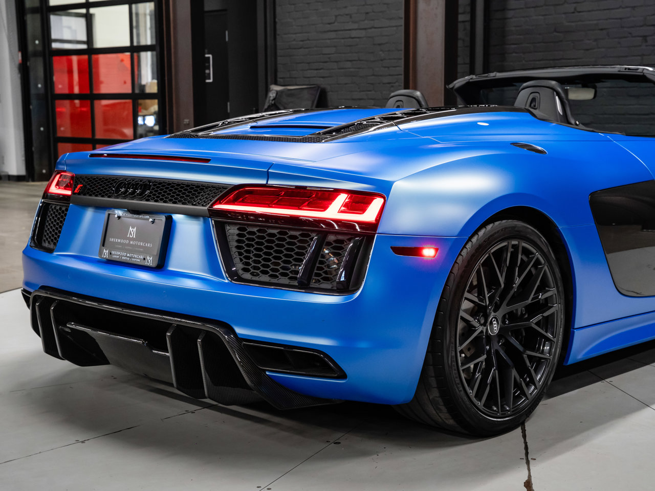Unleash supercar performance with this 2017 Audi R8 V10 Quattro Spyder, powered by a naturally aspirated 5.2L V10 delivering breathtaking sound and speed. Originally finished in Tango Red Metallic, it now wears a striking matte blue vinyl wrap for a custom, head-turning presence.This R8 is enhanced with a titanium valved exhaust that amplifies the V10's roar, along with carbon fiber exterior accents and carbon interior trim for a true motorsport feel. Inside, you'll find heated seats, navigation, and a premium Bang & Olufsen sound system, blending everyday comfort with exotic performance.With its open-top Spyder design, Quattro all-wheel drive, and aggressive styling, this Audi R8 delivers a perfect mix of precision engineering, luxury, and visceral driving excitement.This vehicle is presented by Sherwood Motorcars located at 155-3001 Buckingham Drive, Sherwood Park, AB T8H 0X5. National and International Shipping Available - Ask us about our import and export options. For more details, please visit us in store, or call/text 587-782-4153. AMVIC Licensed Dealer.Pricing includes AMVIC & documentation fee. See Dealer for Details [Read more] [Read less]