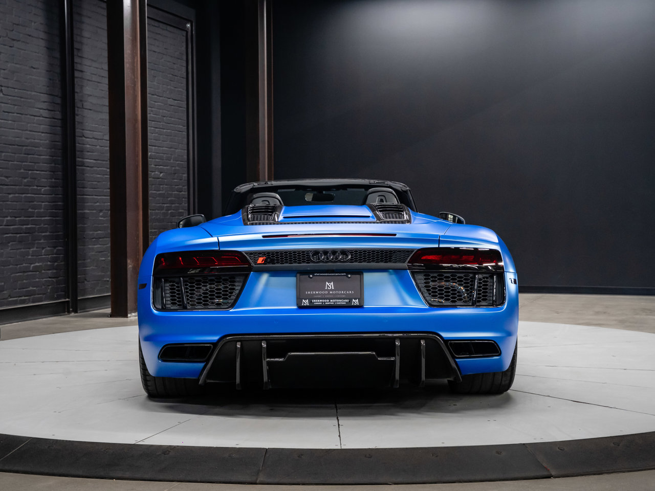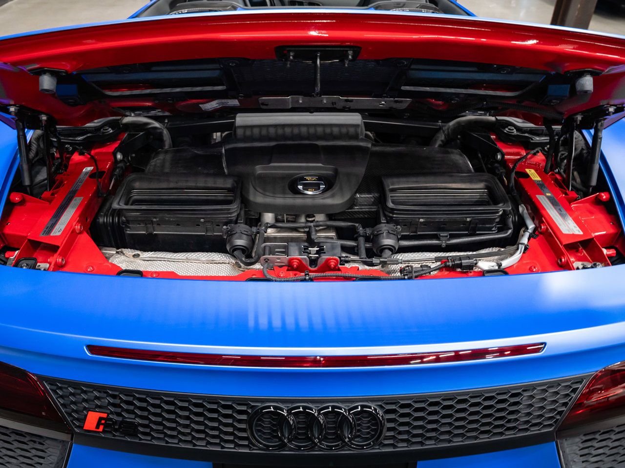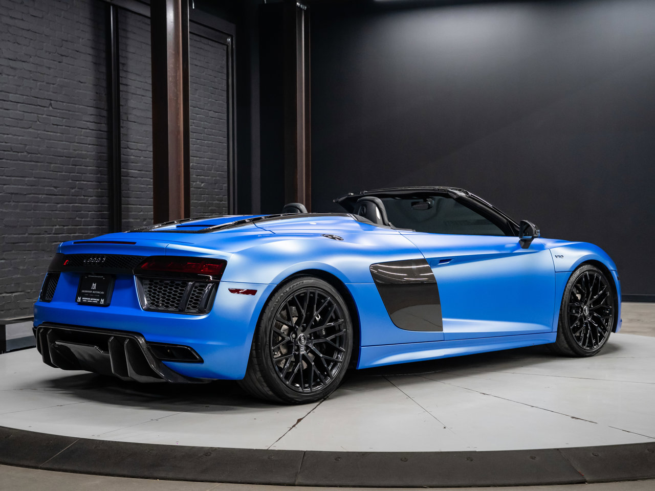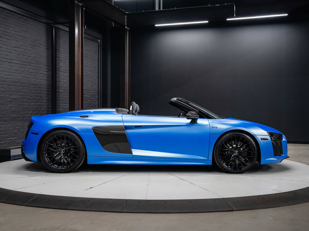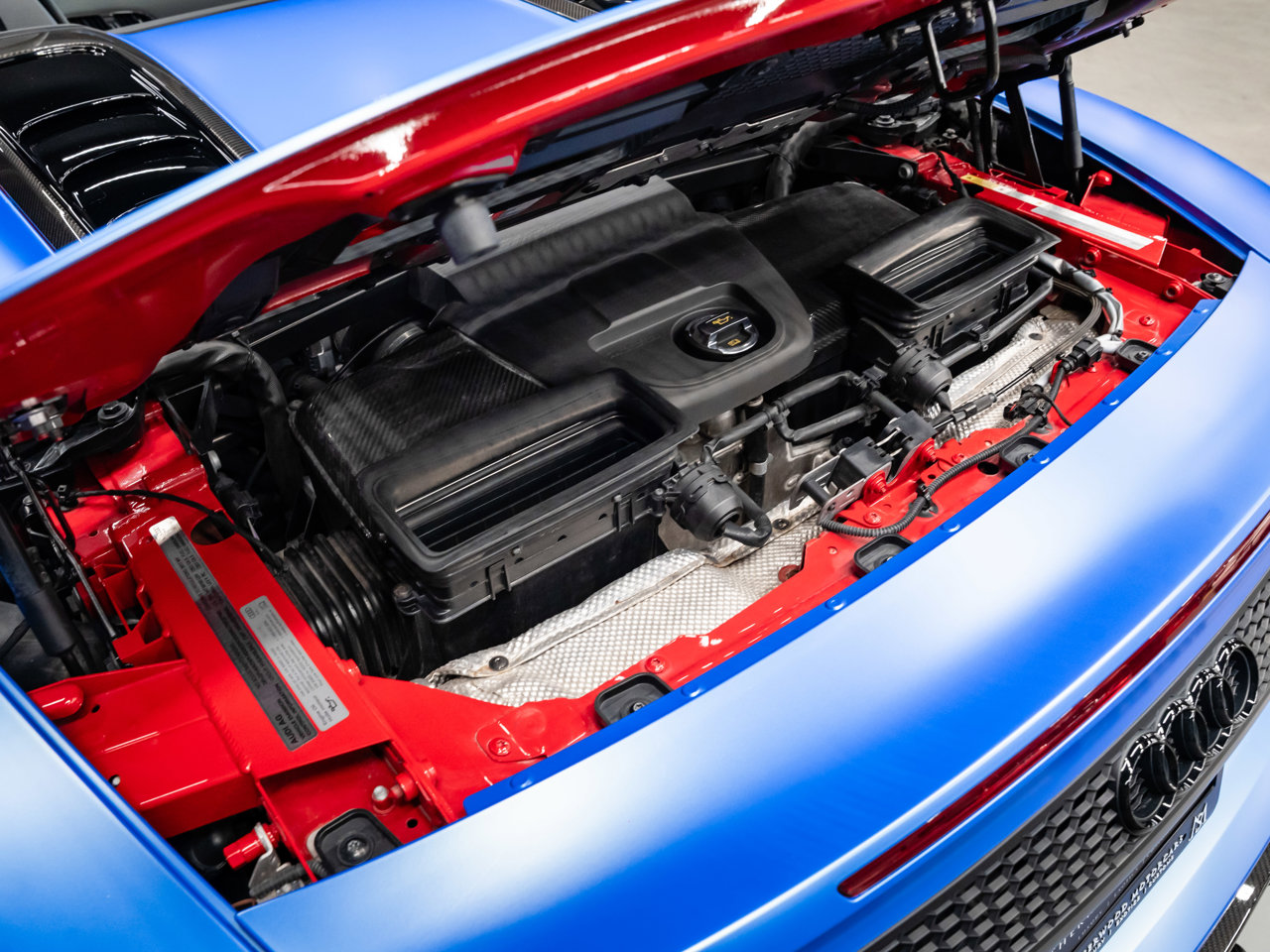 Unleash supercar performance with this 2017 Audi R8 V10 Quattro Spyder, powered by a naturally aspirated 5.2L V10 delivering breathtaking sound and speed. Originally finished in Tango Red Metallic, it now wears a striking matte blue vinyl wrap for a custom, head-turning presence.This R8 is enhanced with a titanium valved exhaust that amplifies the V10's roar, along with carbon fiber exterior accents and carbon interior trim for a true motorsport feel. Inside, you'll find heated seats, navigation, and a premium Bang & Olufsen sound system, blending everyday comfort with exotic performance.With its open-top Spyder design, Quattro all-wheel drive, and aggressive styling, this Audi R8 delivers a perfect mix of precision engineering, luxury, and visceral driving excitement.This vehicle is presented by Sherwood Motorcars located at 155-3001 Buckingham Drive, Sherwood Park, AB T8H 0X5. National and International Shipping Available - Ask us about our import and export options. For more details, please visit us in store, or call/text 587-782-4153. AMVIC Licensed Dealer.Pricing includes AMVIC & documentation fee. See Dealer for Details [Read more] [Read less]