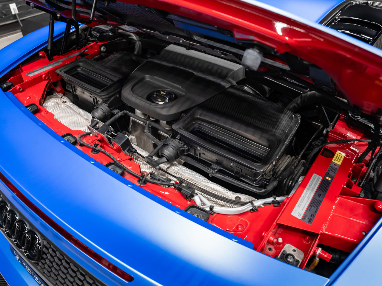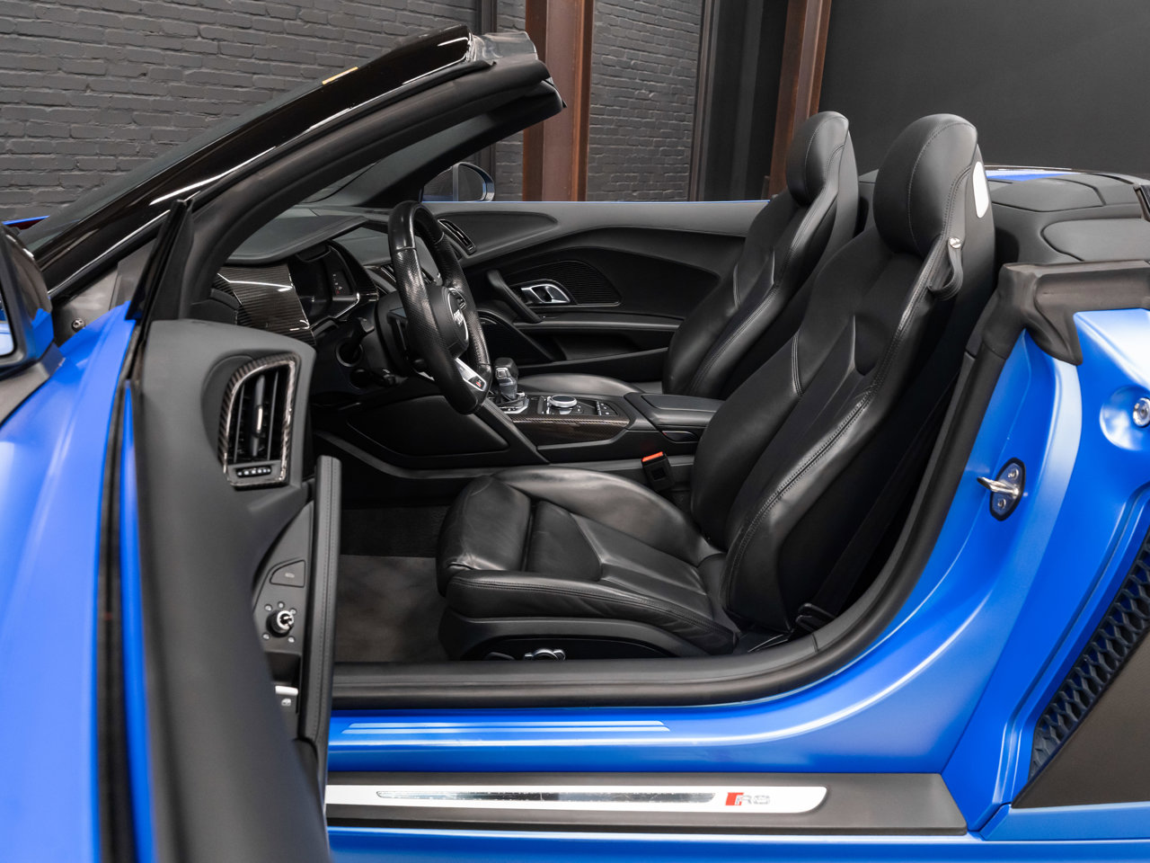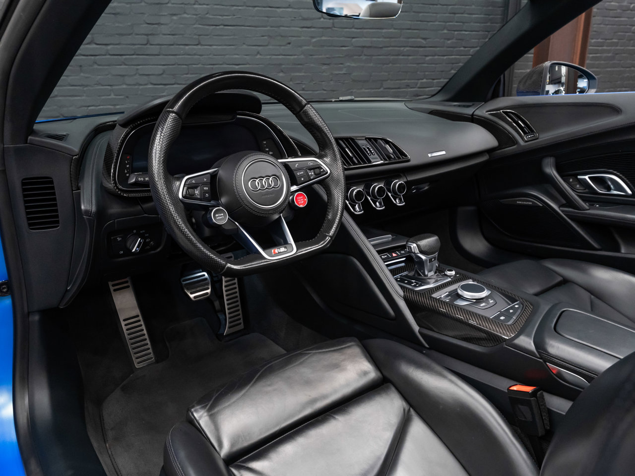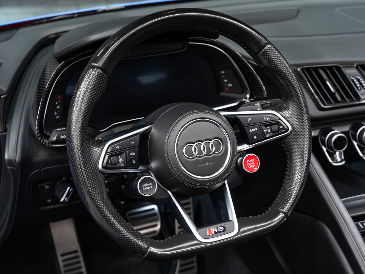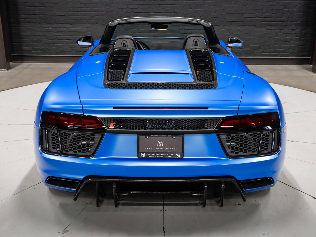 Unleash supercar performance with this 2017 Audi R8 V10 Quattro Spyder, powered by a naturally aspirated 5.2L V10 delivering breathtaking sound and speed. Originally finished in Tango Red Metallic, it now wears a striking matte blue vinyl wrap for a custom, head-turning presence.This R8 is enhanced with a titanium valved exhaust that amplifies the V10's roar, along with carbon fiber exterior accents and carbon interior trim for a true motorsport feel. Inside, you'll find heated seats, navigation, and a premium Bang & Olufsen sound system, blending everyday comfort with exotic performance.With its open-top Spyder design, Quattro all-wheel drive, and aggressive styling, this Audi R8 delivers a perfect mix of precision engineering, luxury, and visceral driving excitement.This vehicle is presented by Sherwood Motorcars located at 155-3001 Buckingham Drive, Sherwood Park, AB T8H 0X5. National and International Shipping Available - Ask us about our import and export options. For more details, please visit us in store, or call/text 587-782-4153. AMVIC Licensed Dealer.Pricing includes AMVIC & documentation fee. See Dealer for Details [Read more] [Read less]
