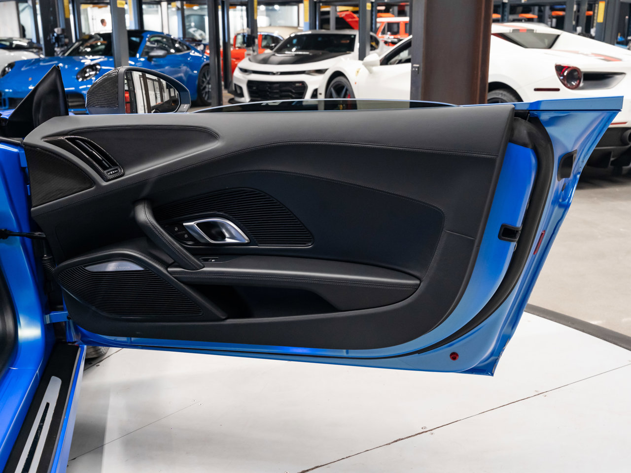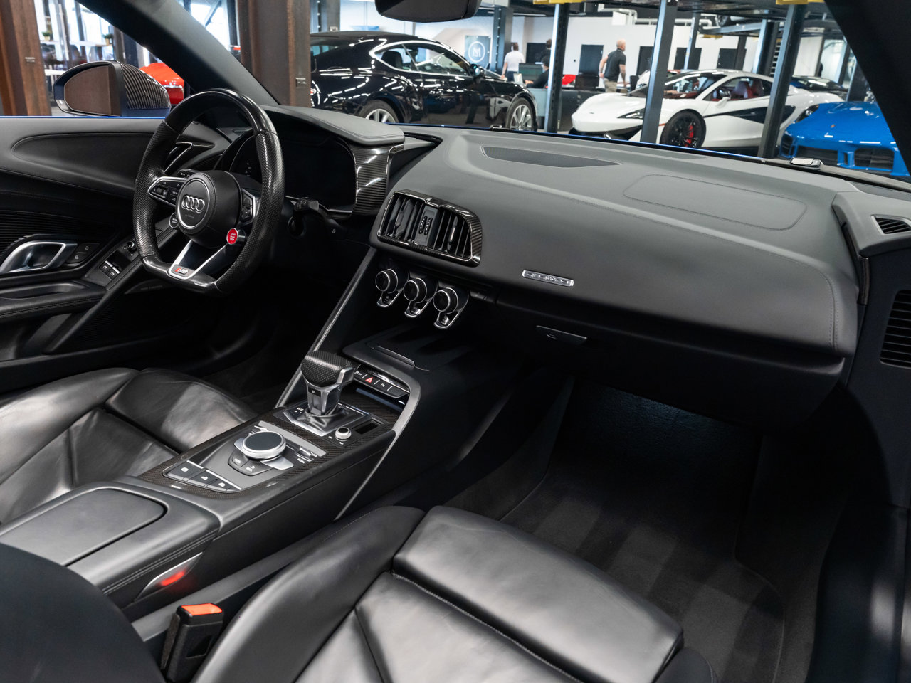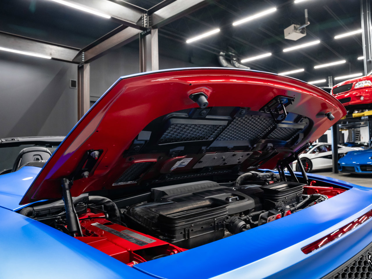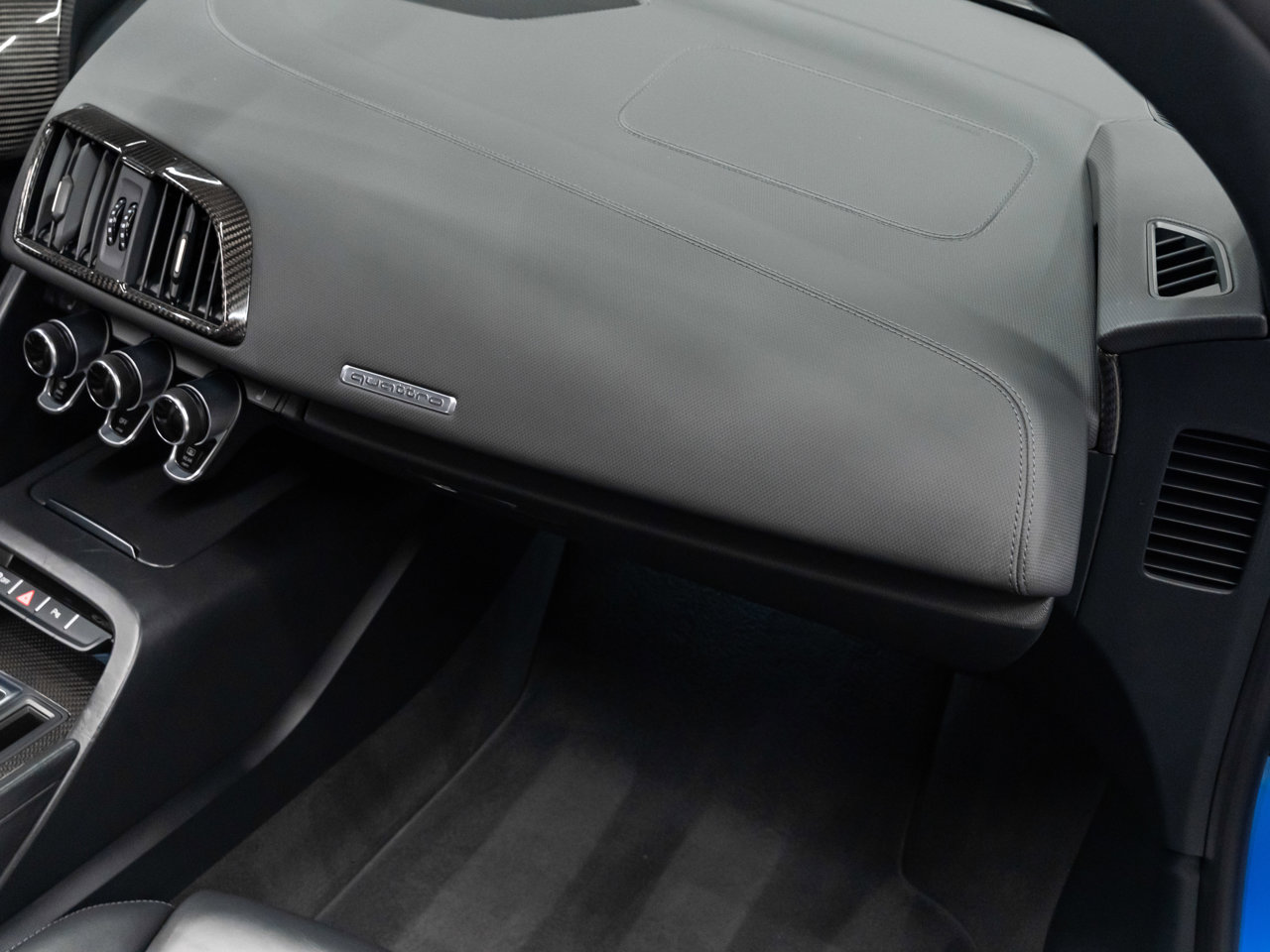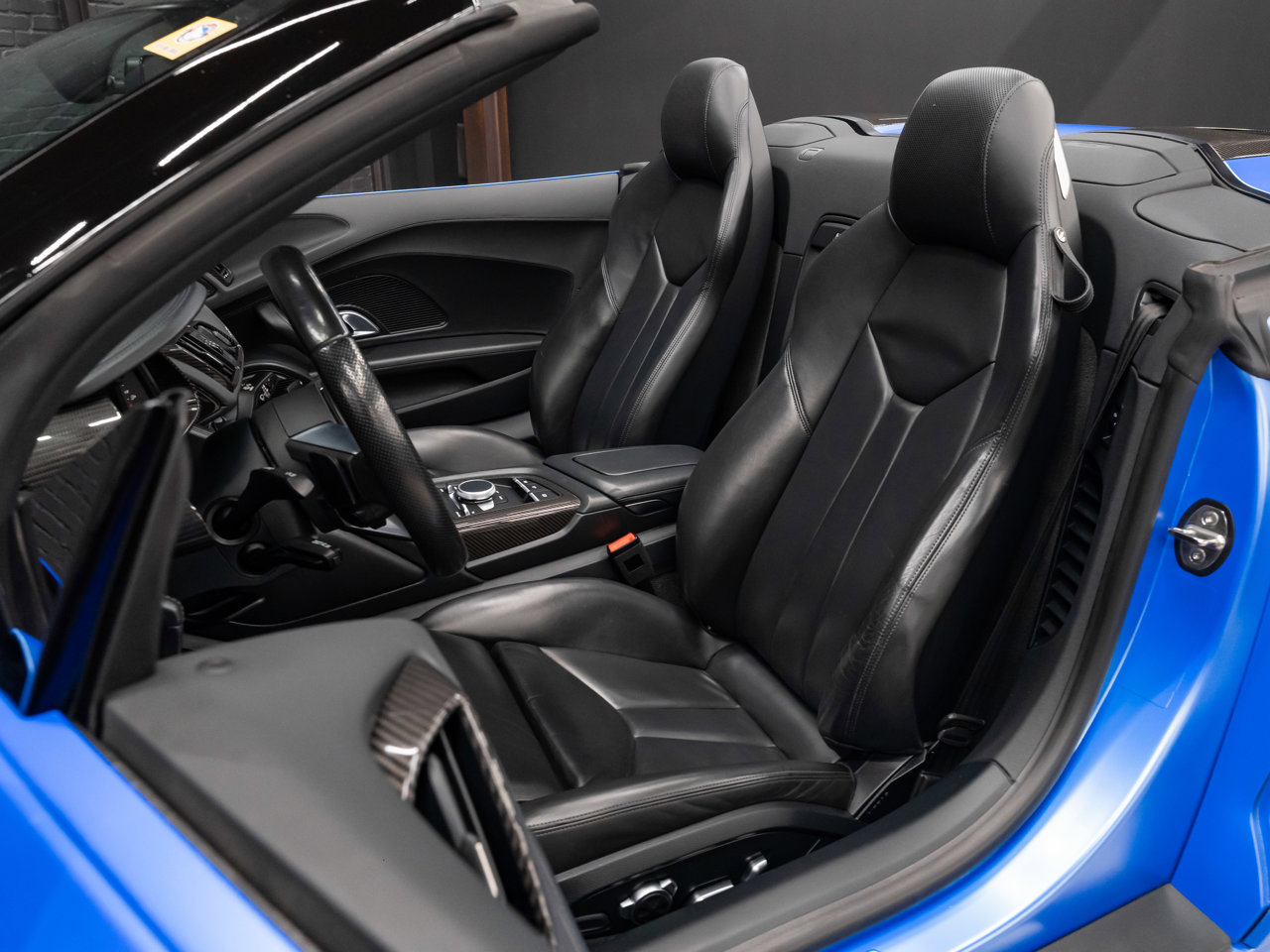 Unleash supercar performance with this 2017 Audi R8 V10 Quattro Spyder, powered by a naturally aspirated 5.2L V10 delivering breathtaking sound and speed. Originally finished in Tango Red Metallic, it now wears a striking matte blue vinyl wrap for a custom, head-turning presence.This R8 is enhanced with a titanium valved exhaust that amplifies the V10's roar, along with carbon fiber exterior accents and carbon interior trim for a true motorsport feel. Inside, you'll find heated seats, navigation, and a premium Bang & Olufsen sound system, blending everyday comfort with exotic performance.With its open-top Spyder design, Quattro all-wheel drive, and aggressive styling, this Audi R8 delivers a perfect mix of precision engineering, luxury, and visceral driving excitement.This vehicle is presented by Sherwood Motorcars located at 155-3001 Buckingham Drive, Sherwood Park, AB T8H 0X5. National and International Shipping Available - Ask us about our import and export options. For more details, please visit us in store, or call/text 587-782-4153. AMVIC Licensed Dealer.Pricing includes AMVIC & documentation fee. See Dealer for Details [Read more] [Read less]