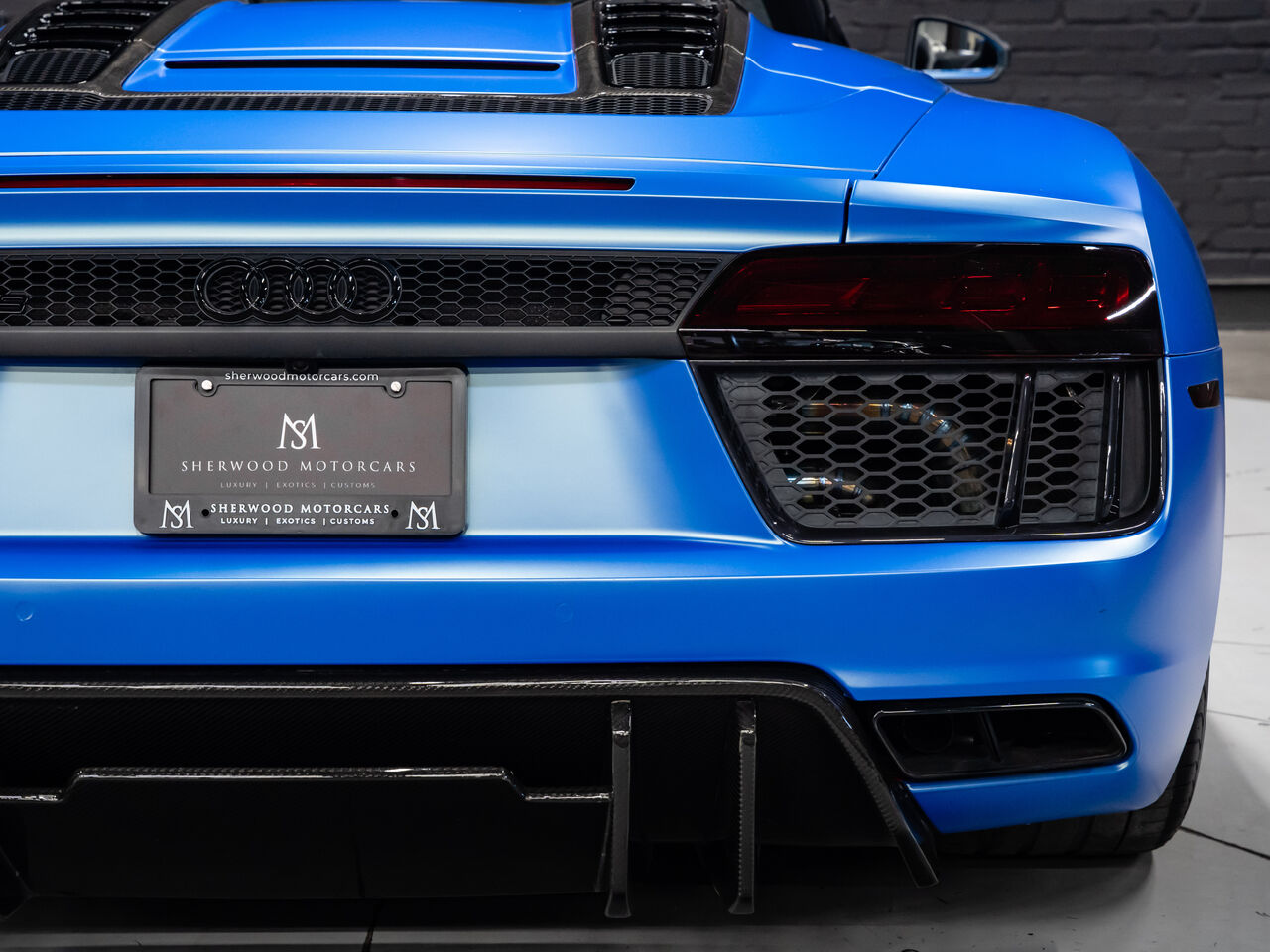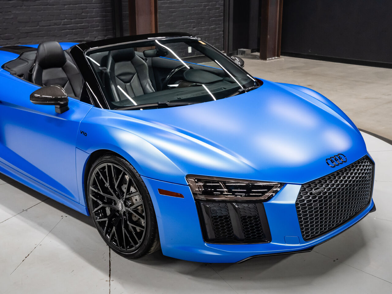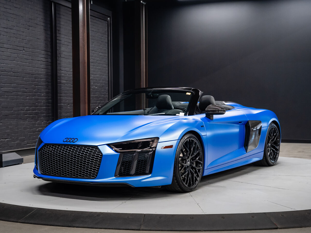 Unleash supercar performance with this 2017 Audi R8 V10 Quattro Spyder, powered by a naturally aspirated 5.2L V10 delivering breathtaking sound and speed. Originally finished in Tango Red Metallic, it now wears a striking matte blue vinyl wrap for a custom, head-turning presence.This R8 is enhanced with a titanium valved exhaust that amplifies the V10's roar, along with carbon fiber exterior accents and carbon interior trim for a true motorsport feel. Inside, you'll find heated seats, navigation, and a premium Bang & Olufsen sound system, blending everyday comfort with exotic performance.With its open-top Spyder design, Quattro all-wheel drive, and aggressive styling, this Audi R8 delivers a perfect mix of precision engineering, luxury, and visceral driving excitement.This vehicle is presented by Sherwood Motorcars located at 155-3001 Buckingham Drive, Sherwood Park, AB T8H 0X5. National and International Shipping Available - Ask us about our import and export options. For more details, please visit us in store, or call/text 587-782-4153. AMVIC Licensed Dealer.Pricing includes AMVIC & documentation fee. See Dealer for Details [Read more] [Read less]