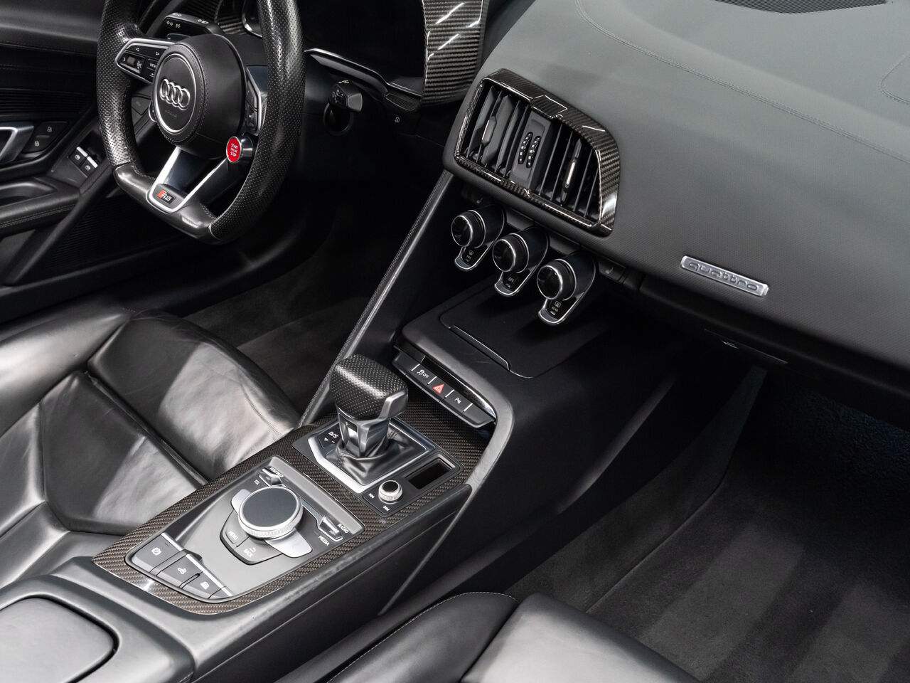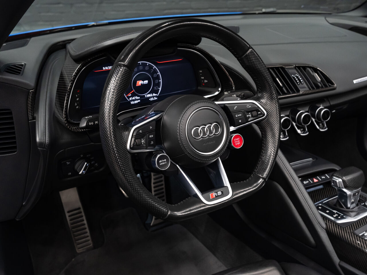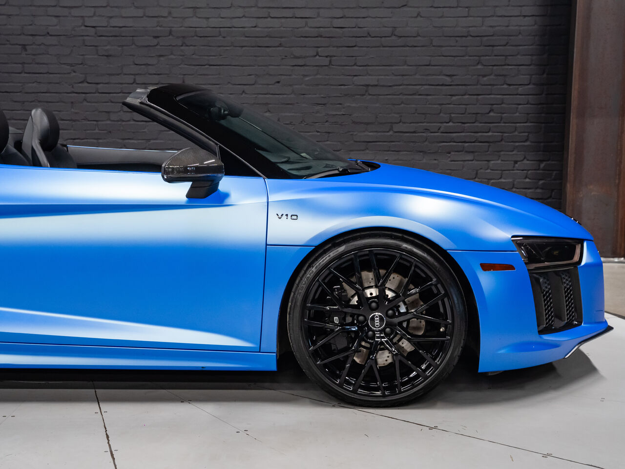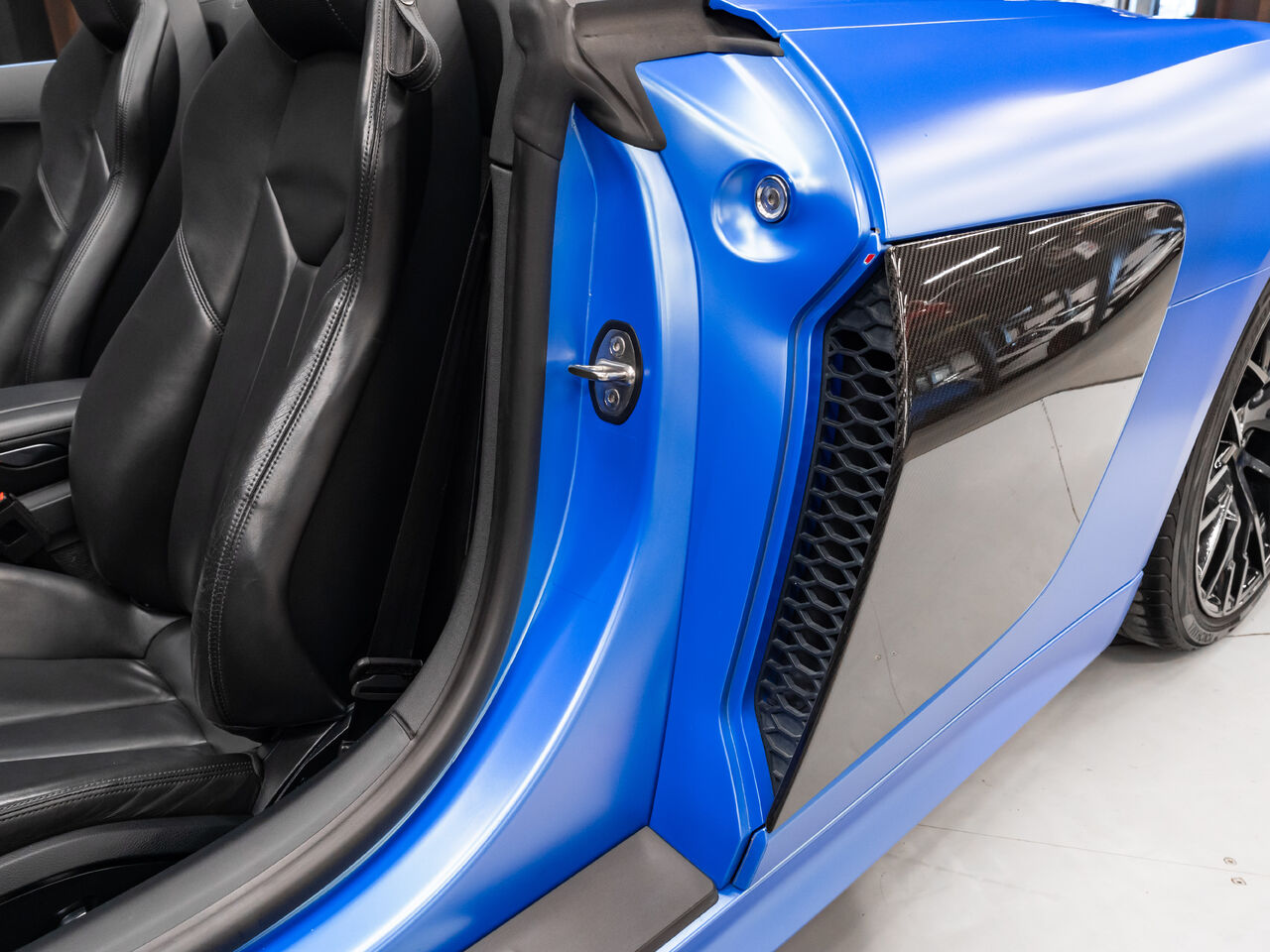 Unleash supercar performance with this 2017 Audi R8 V10 Quattro Spyder, powered by a naturally aspirated 5.2L V10 delivering breathtaking sound and speed. Originally finished in Tango Red Metallic, it now wears a striking matte blue vinyl wrap for a custom, head-turning presence.This R8 is enhanced with a titanium valved exhaust that amplifies the V10's roar, along with carbon fiber exterior accents and carbon interior trim for a true motorsport feel. Inside, you'll find heated seats, navigation, and a premium Bang & Olufsen sound system, blending everyday comfort with exotic performance.With its open-top Spyder design, Quattro all-wheel drive, and aggressive styling, this Audi R8 delivers a perfect mix of precision engineering, luxury, and visceral driving excitement.This vehicle is presented by Sherwood Motorcars located at 155-3001 Buckingham Drive, Sherwood Park, AB T8H 0X5. National and International Shipping Available - Ask us about our import and export options. For more details, please visit us in store, or call/text 587-782-4153. AMVIC Licensed Dealer.Pricing includes AMVIC & documentation fee. See Dealer for Details [Read more] [Read less]