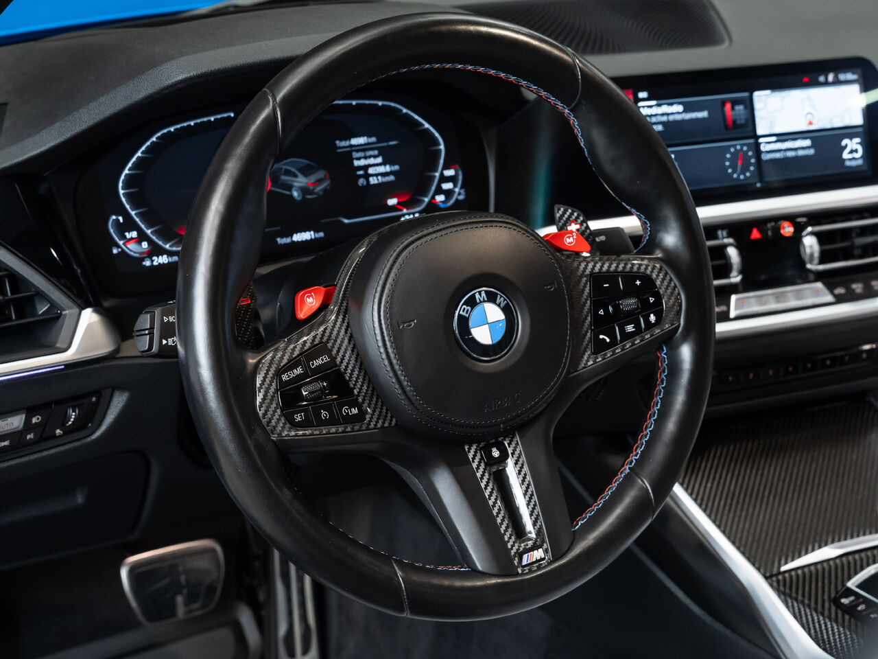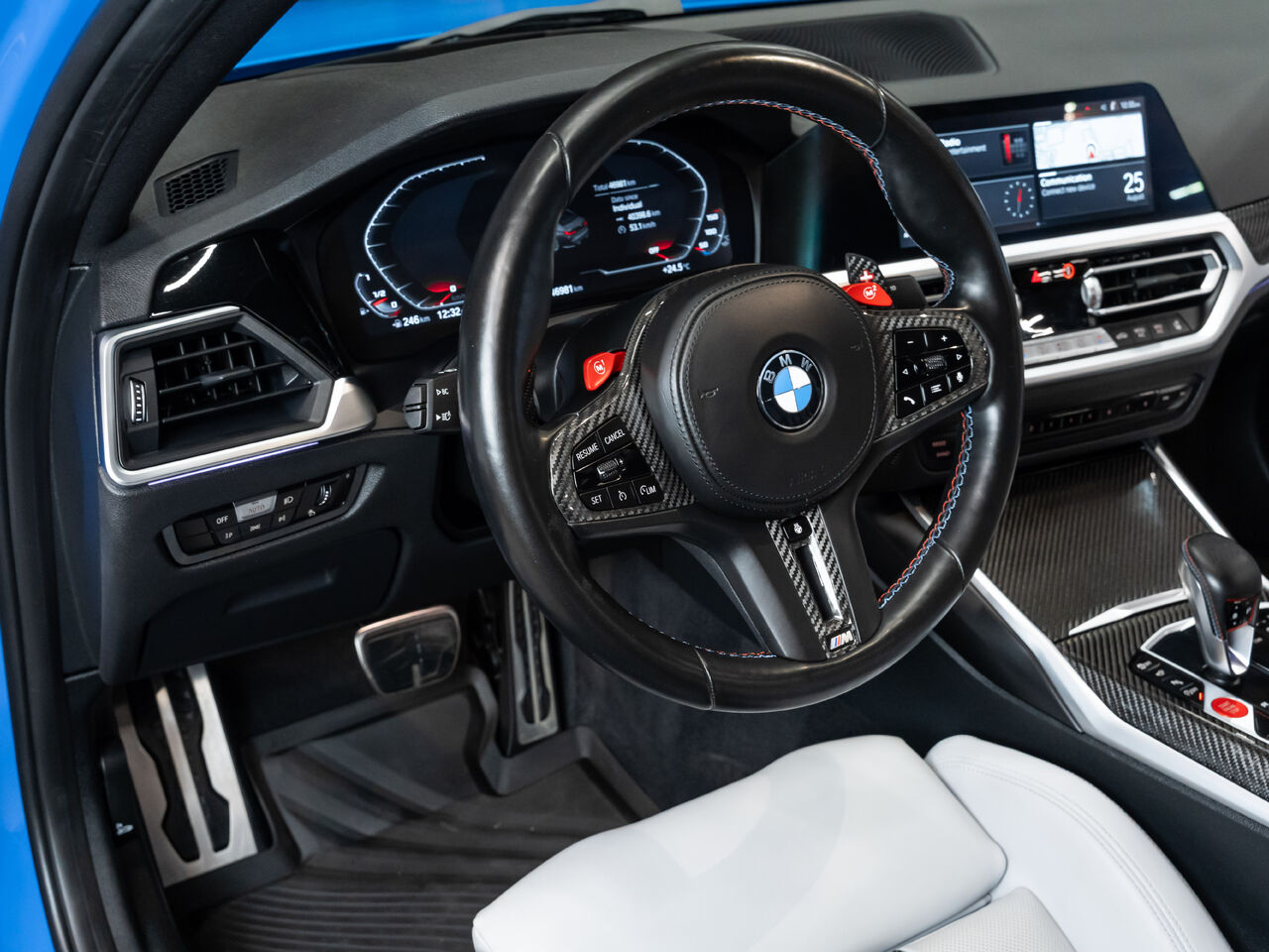 *2022 BMW M3 Competition xDrive -- Gentian Blue, Unleash the Beast*Experience *uncompromising performance and luxury* with this 2022 *BMW M3 Competition xDrive*, finished in striking *Gentian Blue* over a sophisticated *Silverstone/Black interior*. At its core is a *twin-turbo 3.0L inline-6* paired with an *8-speed automatic with overdrive*, delivering blistering acceleration, razor-sharp precision, and the unmistakable roar of a true M3. *Full front PPF* protects the stunning finish while the *carbon fiber roof* and *carbon-trimmed interior* shave weight and elevate performance.Every drive is an experience: the *valved exhaust* lets you switch from refined to ferocious at the touch of a button, *Harman/Kardon premium audio* fills the cabin with crystal-clear sound, and *ambient lighting* enhances the cockpit's race-inspired atmosphere. *Navigation* and a *360-degree camera* ensure confidence on every road, whether carving aggressive corners or gliding through city streets.Bold, agile, and thrilling, this M3 Competition xDrive perfectly blends *track-ready dynamics with everyday refinement*, delivering an experience that's as exhilarating as it is luxurious. For enthusiasts who demand *style, power, and precision*, this BMW is a statement you can drive.This vehicle is presented by Sherwood Motorcars located at 155-3001 Buckingham Drive, Sherwood Park, AB T8H 0X5. National and International Shipping Available - Ask us about our import and export options. For more details, please visit us in store, or call/text 587-782-4153. AMVIC Licensed Dealer.Pricing includes AMVIC & documentation fee. See Dealer for Details [Read more] [Read less]