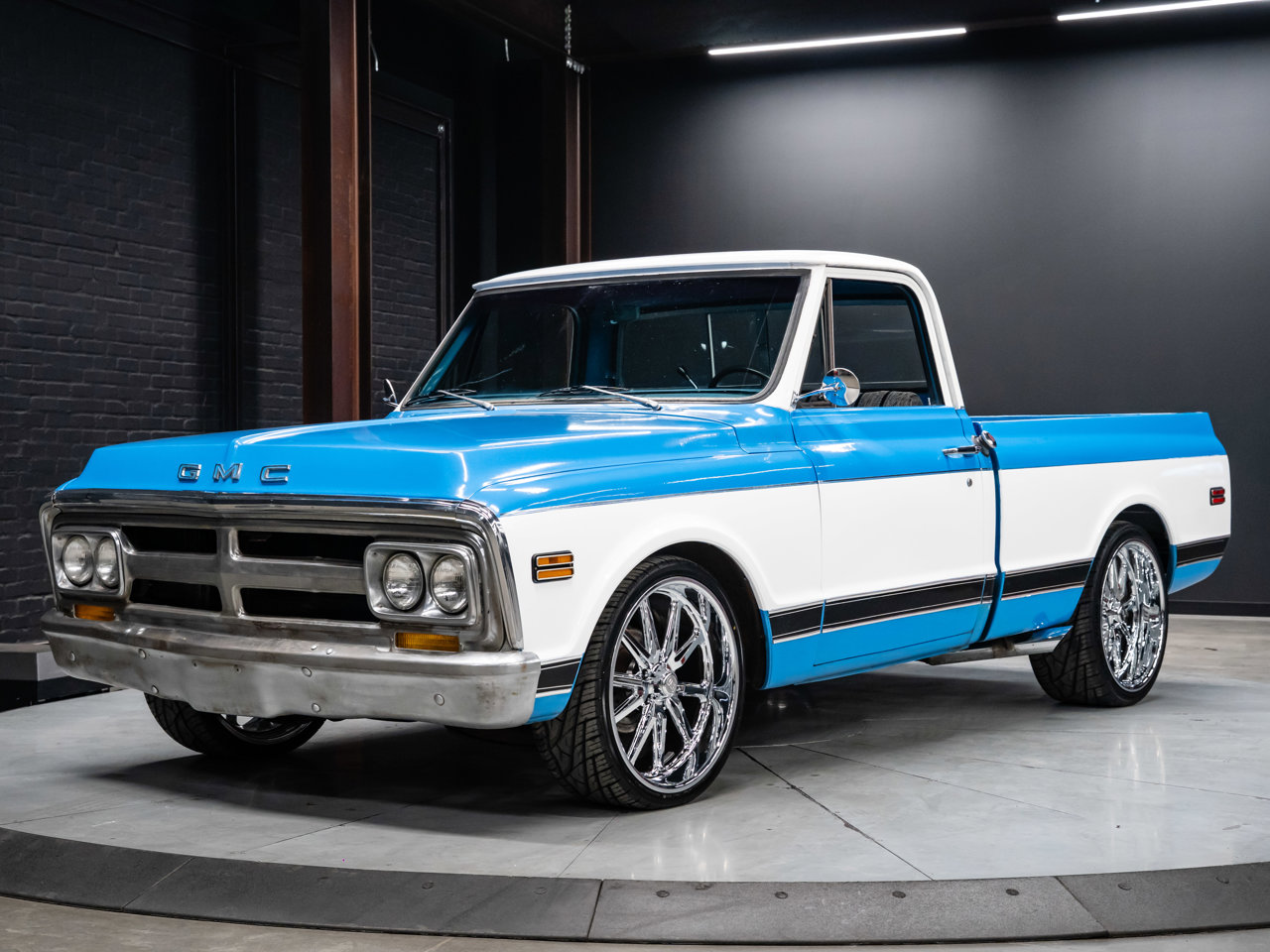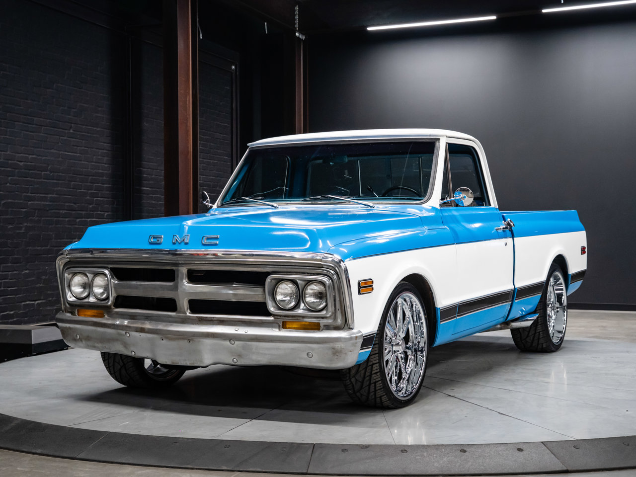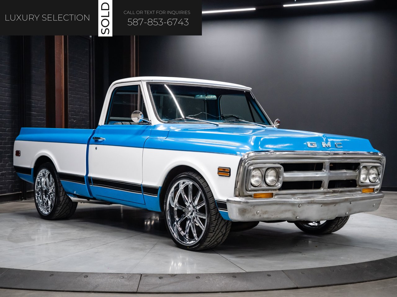This 1971 GMC C10 is a true classic pickup that combines vintage charm with thoughtful restoration and custom touches. Powered by a 350cid GM V8 with a 3-speed automatic (TH350) and equipped with a GM 12-bolt rear end with 3.23 gears, it retains its original drivetrain configuration, though mileage is TMU (true mileage unknown).Finished in a factory-matched Medium Blue and Pure White two-tone, the exterior evokes the timeless styling of early '70s GMC trucks. Inside, the original factory blue vinyl bench seat preserves the authentic cabin feel.This partly restored classic blends stock authenticity with custom enhancements, making it a standout for collectors or enthusiasts looking for a vintage pickup that honors its heritage while offering room for personalization.This vehicle is presented by Sherwood Motorcars located at 155-3001 Buckingham Drive, Sherwood Park, AB T8H 0X5. National and International Shipping Available - Ask us about our import and export options. For more details, please visit us in store, or call/text 587-782-4153. AMVIC Licensed Dealer.Pricing includes AMVIC & documentation fee. See Dealer for Details [Read more] [Read less]