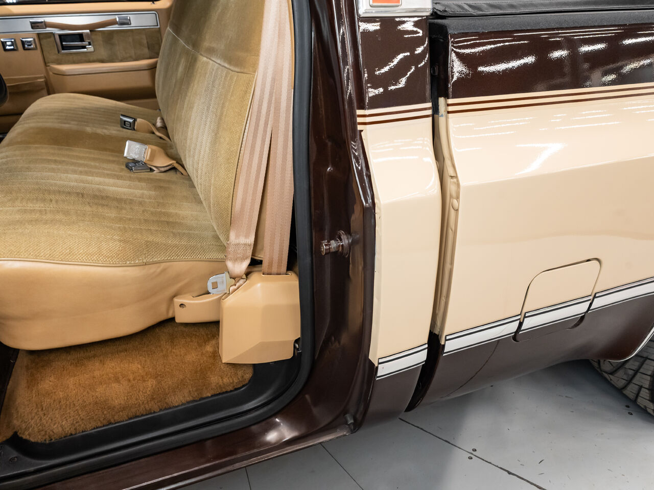Late Model Classic - 305ci GM V8 with 700R4 TransmissionThis Late Model Classic vehicle maintains a stock and non-restored condition, offering a perfect blend of original authenticity and light modern enhancements. Featuring a 305ci GM V8 engine with matching numbers as confirmed by the previous owner, this vehicle retains the original engine and drivetrain, ensuring that the heart of the car is as it was when it left the factory. The engine is complemented by new Edelbrock Racing black valve covers and an air cleaner, adding a subtle but stylish upgrade under the hood.The 4-speed automatic transmission is the original GM 700R4, offering smooth shifts and dependable performance. Paired with the GM 12-bolt rear axle and 3:73 gears, this classic is designed for both cruising and handling with confidence, offering a true driving experience. The 128,443 KMS on the odometer are original as per the previous owner, signaling that the vehicle has been well-maintained and enjoyed.The exterior features a unique two-tone color scheme with the upper portion painted in the original factory Dark Brown Metallic and the lower portion in Light Tan. This timeless combination creates a classic and appealing look. Additionally, a new leather box cover has been added for added practicality and style.The wheels have been upgraded to 20 US-MAG Scottsdale Rally wheels, providing a modern touch while still complementing the classic design. The wheels are painted and fitted with radial tires for improved grip and ride comfort.The vehicle's body and paint remain original, preserving its classic appeal. Both the chrome trim and glass are also original, showcasing the vehicle's lasting quality. The interior is equipped with original tan cloth bench seating, staying true to the factory design, while the dash and gauges have been left in their original state, offering a nostalgic look at the vehicle's vintage roots.The electrical system, cooling, and exhaust are all original and unaltered, further preserving the classic integrity of this vehicle. Overall, this car presents an excellent opportunity for anyone looking to own a non-restored, late model classic with a few key upgrades that add modern flair without sacrificing its authenticity.This vehicle is presented by Sherwood Motorcars located at 155-3001 Buckingham Drive, Sherwood Park, AB T8H 0X5. National and International Shipping Available - Ask us about our import and export options. For more details, please visit us in store, or call/text 587-782-4153. AMVIC Licensed Dealer.Pricing includes AMVIC & documentation fee. See Dealer for Details [Read more] [Read less]