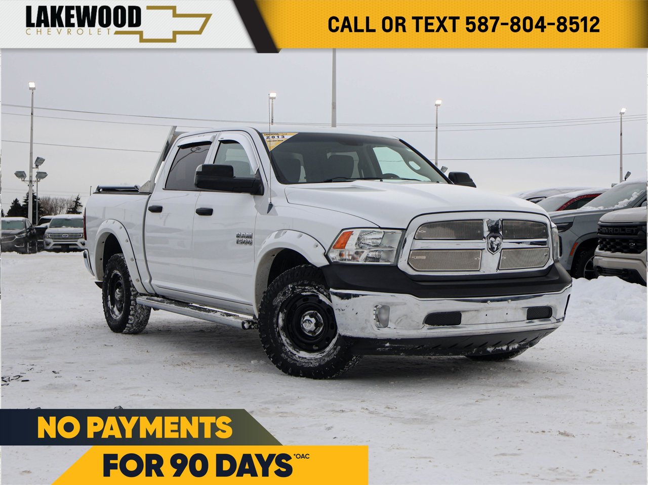 Front Fog Lamps | Power Heated Adjustable Mirrors | Cruise Control | Satellite RadioThe 2013 Ram 1500 ST w/SXT Appearance with the 5.7L HEMI V8 and 4x4 drivetrain offers a capable and dependable full-size pickup experience. Built for both work and everyday driving, this Ram delivers strong performance, reliable towing, and confident handling in a variety of road and weather conditions.The exterior features front fog lamps for improved visibility, while power heated adjustable mirrors add convenience and safety. Inside, practical touches like cruise control and satellite radio make longer drives more comfortable and entertaining.Rugged yet versatile, the 2013 Ram 1500 ST w/SXT Appearance is a solid choice for those seeking a dependable pickup with essential features and classic Ram capability.Talk to our award winning sales staff today and book an appointment or inquire about our services. Lakewood Chevrolet is incredibly proud to be serving Edmonton Area, Leduc, Sherwood Park, and Western Canada. Treat yourself - stop by Lakewood Chevrolet today we're located at 9150 34 Avenue, Edmonton AB T6E 5P2.AMVIC Licensed Dealership*Pricing includes AMVIC LEVY & Documentation fee. See dealer for details*