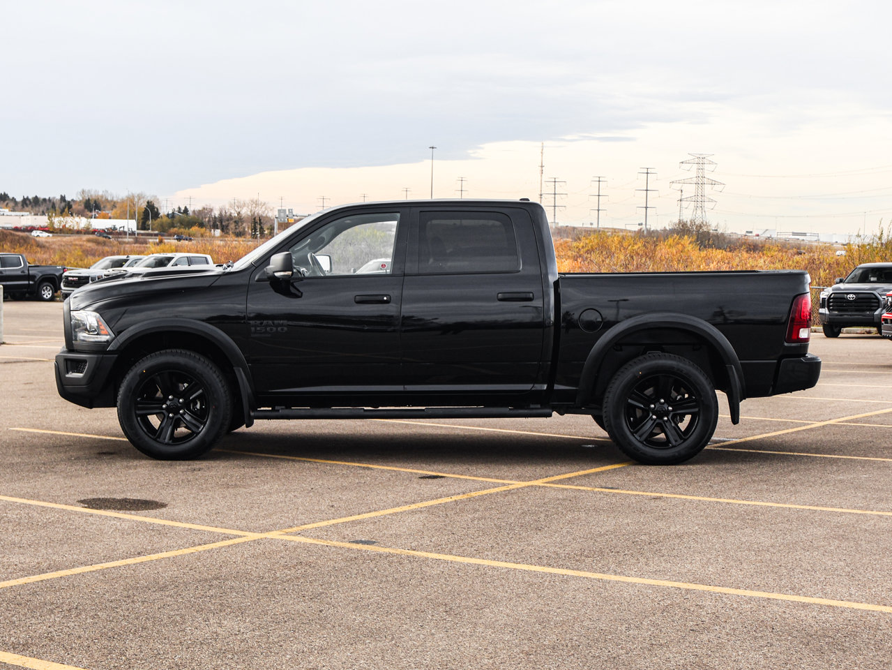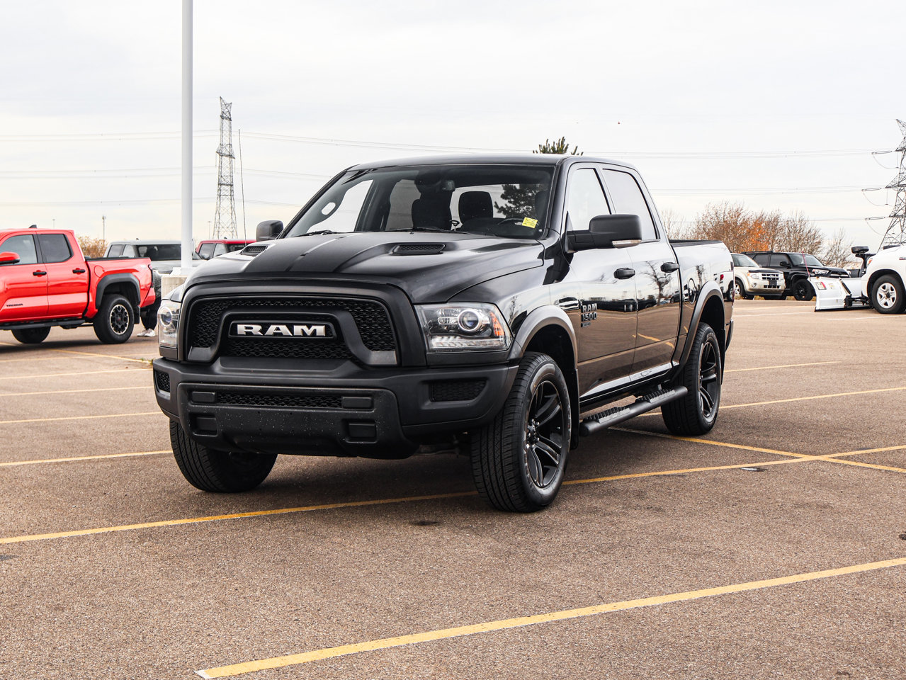 quick order package 29f warlock -inc: engine: 3.6l pentastar vvt v6 transmission: 8-speed automatic black powder-coated rear bumper black ram's head tailgate badge black 4x4 badge b-pillar black-out semi-gloss black wheel centre hub bi-function halogen projector headlamps raised ride height rear heavy-duty shock absorbers sport tail lamps black exterior badging black powder-coated front bumper warlock package black grille w/ram lettering black headlamp filler panel dedicated daytime running lights front wheel well liners warlock interior accents black wheel flares
